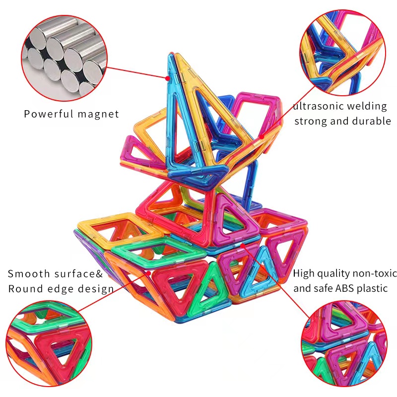【STEM Educational Toy】This magnetic tiles set can help kids acquire the basic knowledge of geometry, color & shape recognition, 3D spatial reasoning at an early age. This engineering toys stimulate problem solving,learning while playing is more motivating for children. Perfect for teachers and homeschooling parents to use as STEM educational toys