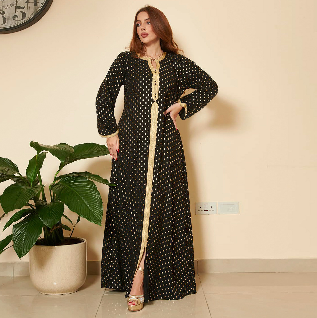 High Quality Middle East Dubai Fashion Lace Jilbab Abaya Muslim Dress Gilded Abaya Women Muslim Long Dress |