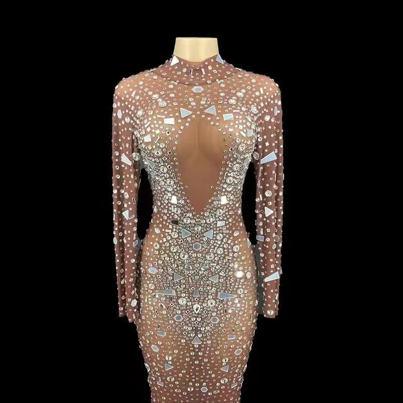 NOVANCE Y1995-B Wholesale Designer Clothing in China Diamond Sequin Split Plus Size Women'S Dresses See Through Diamond Dress
