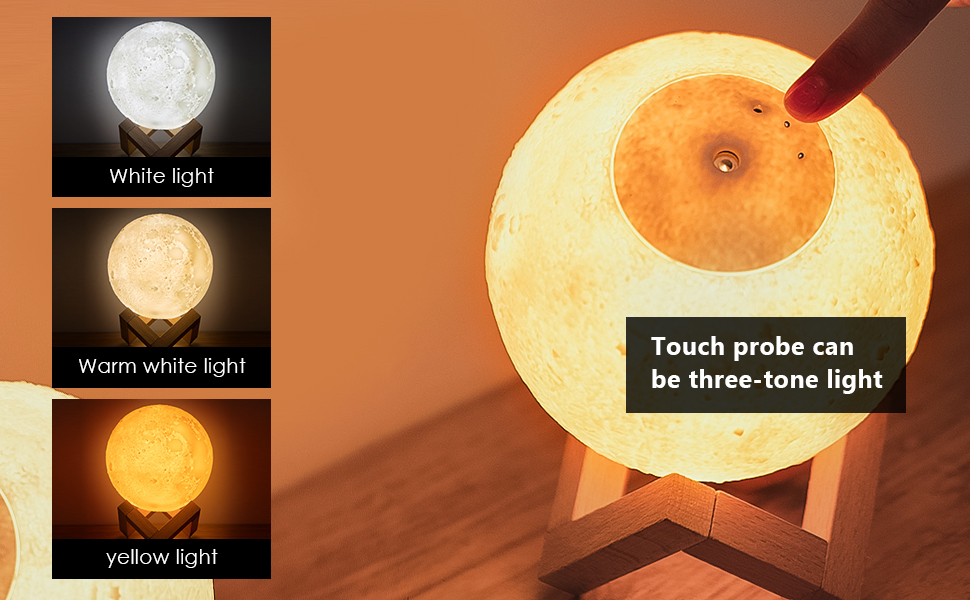 Easily flapping touch on the tap to control the light and humidifier, no button. Each gently tapping brings different light color, three colors in total, white/yellow/warm. Funny operation brings you and your children nice experience.