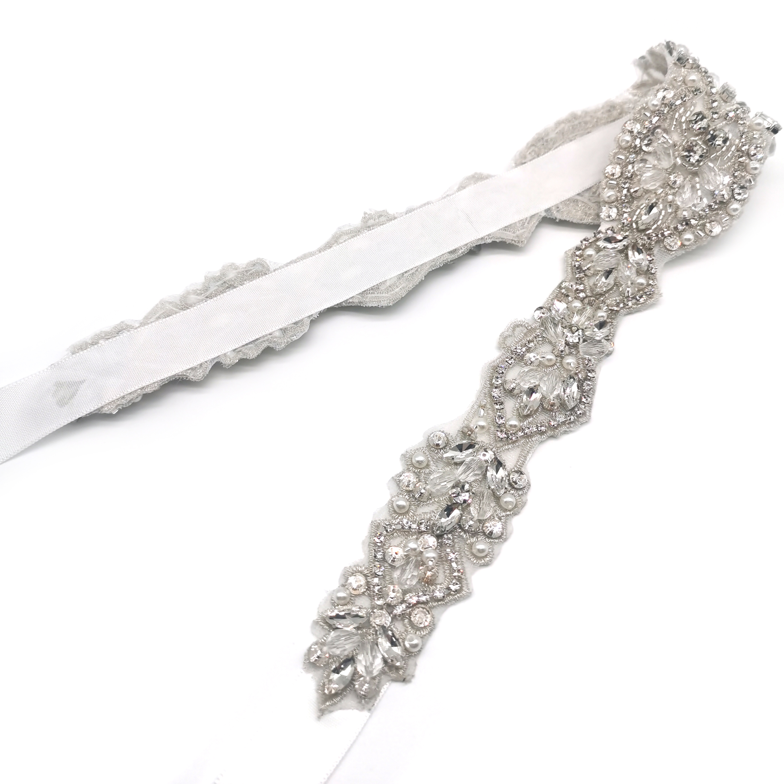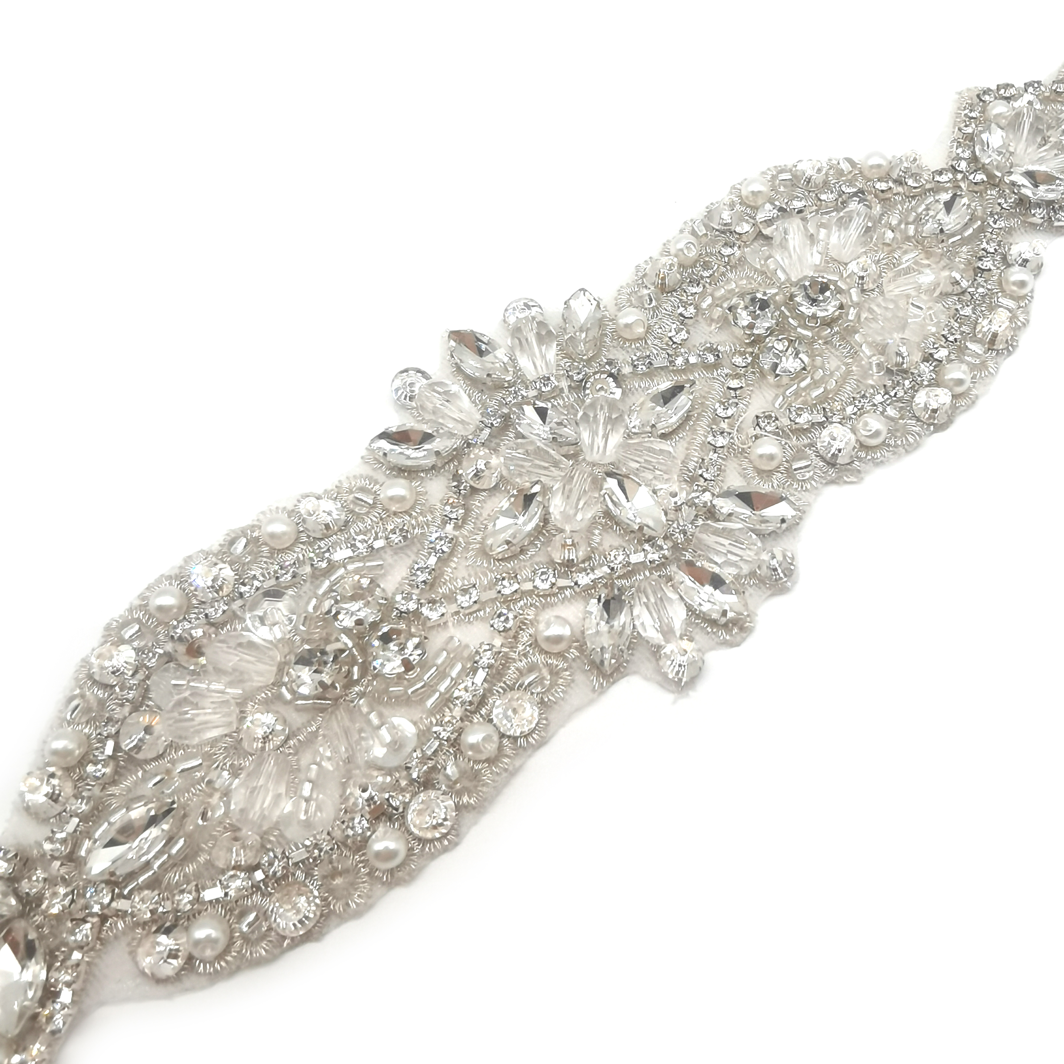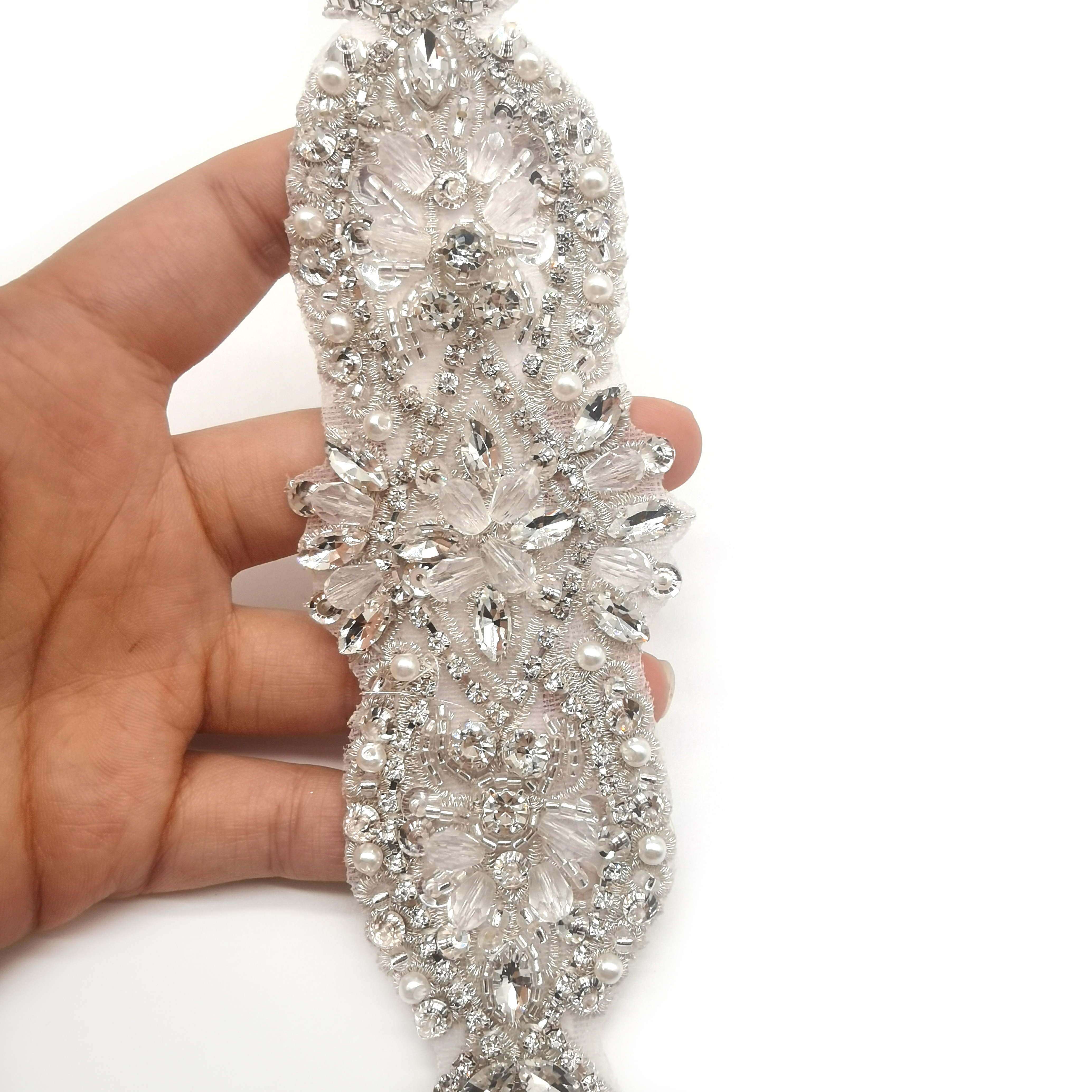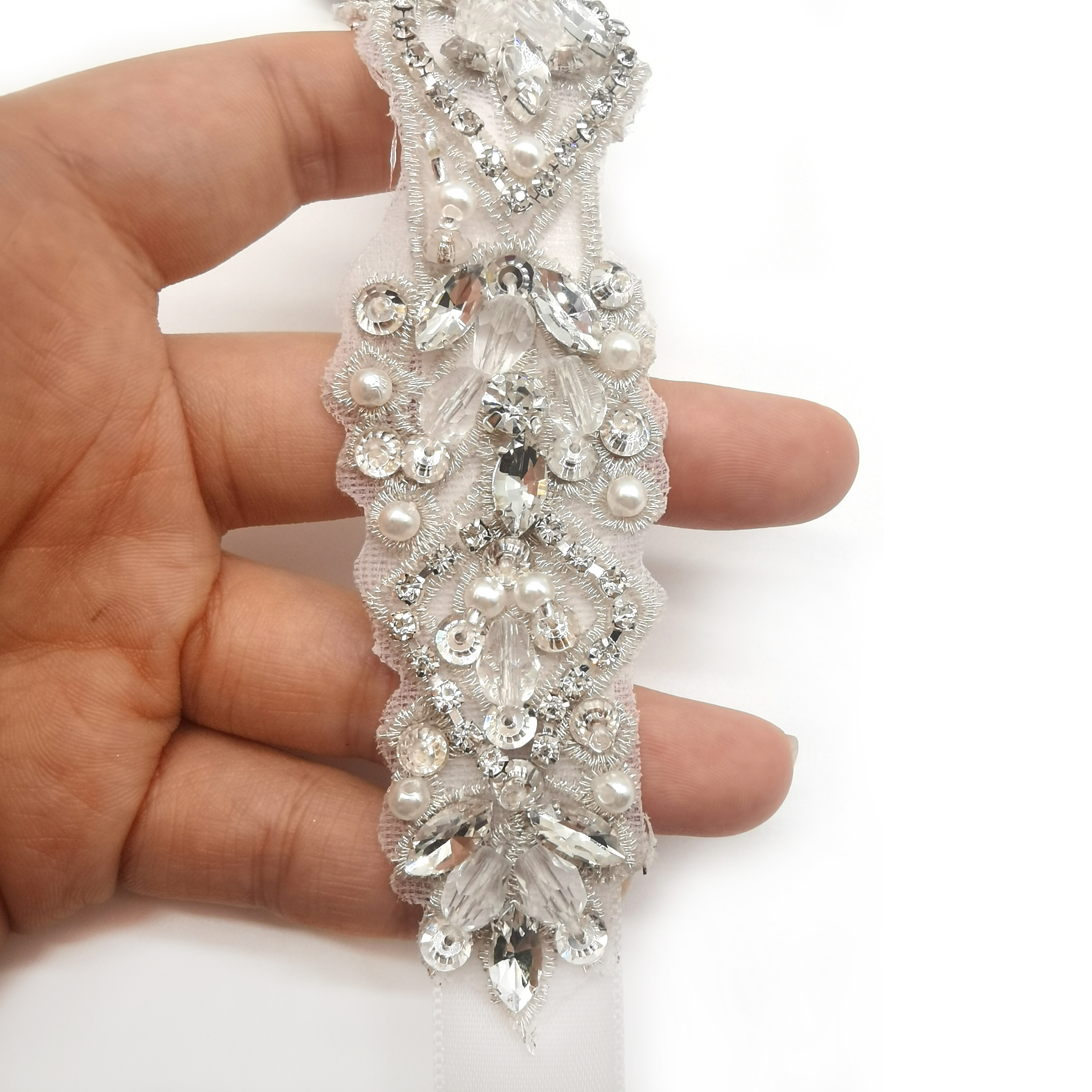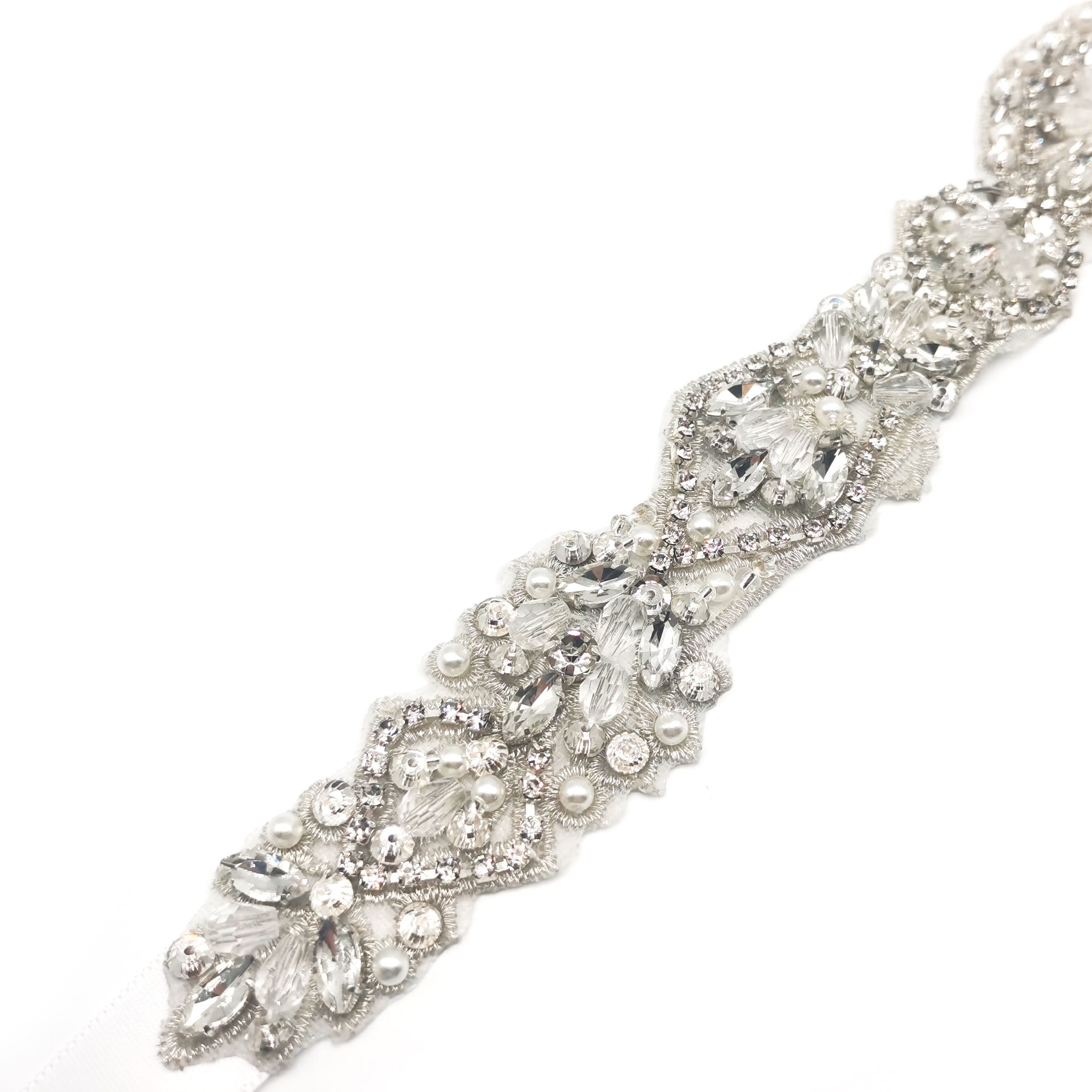 Hot Sale Crystal Rhinestone Belt Sash White Satin Wedding Dress Decoration Rhinestone Bridal Applique