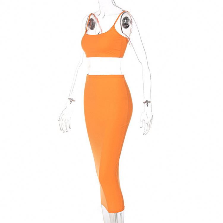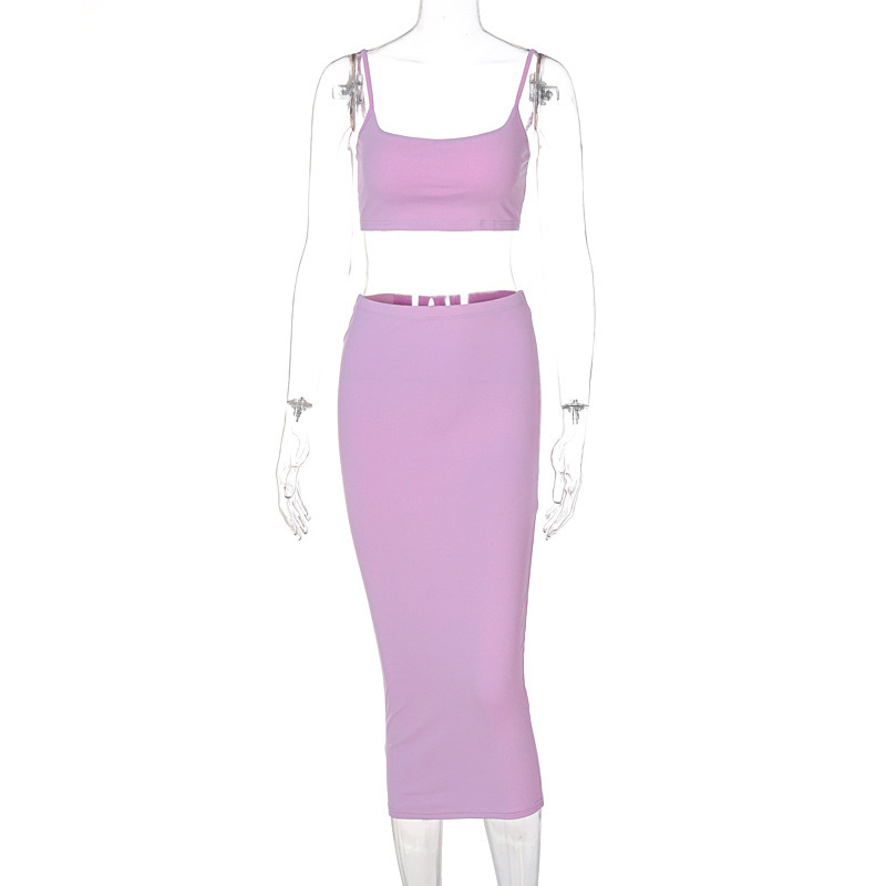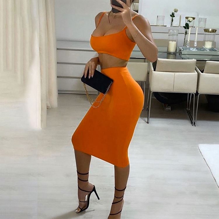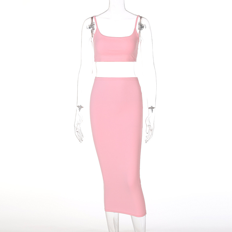 Hot Sale Fashion Womens Clothing 2022 Casual Suits Spring Crop Top Solid Midi Skirt Sexy 2 Piece Set Women 2 Piece Skirt Set