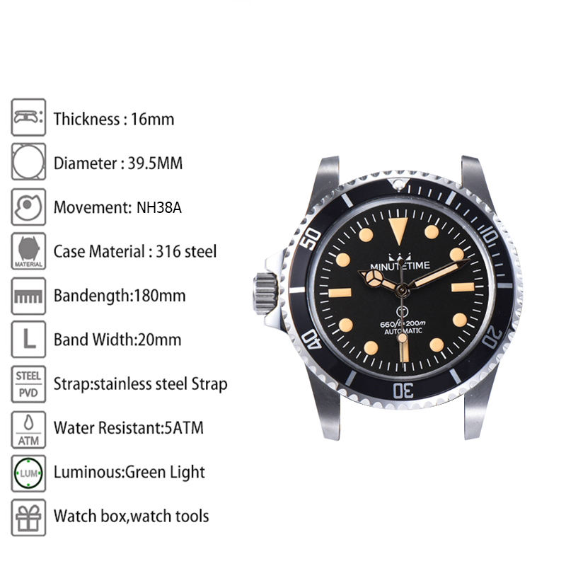 Feature | Water Resistant, Waterproof, Luminous, Luminous Hands |