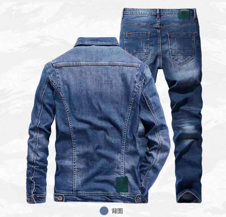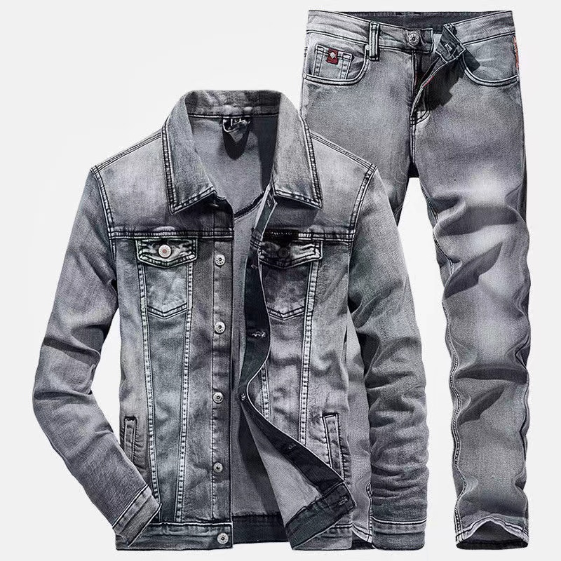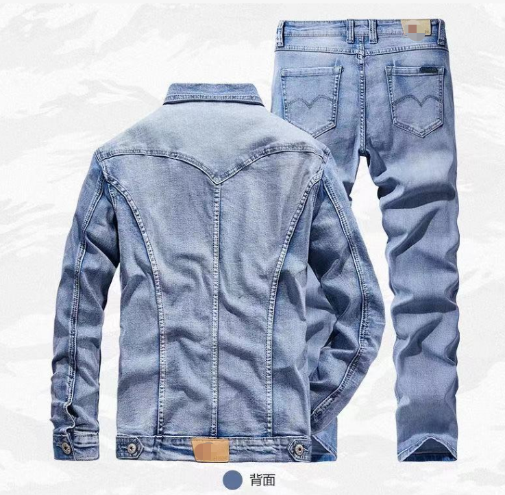 Custom Logo Men's Jeans Denim Jacket Men's Jeans Trousers Two Piece Sets Wholesale