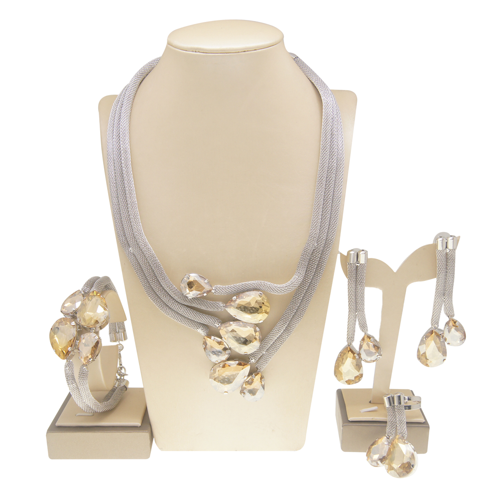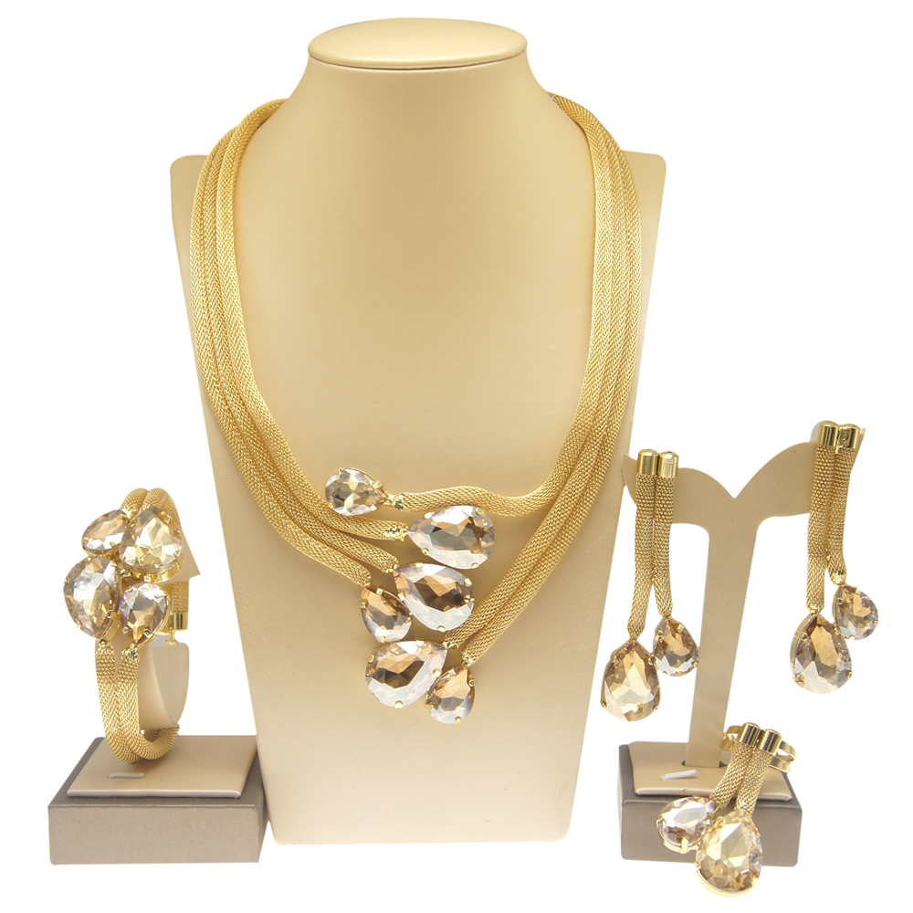 High Quality Bridal Wedding Jewelry Set 18 k Neckless Jewelri Fashion Sets Brazilian Gold Jewelry Wholesale H20022
