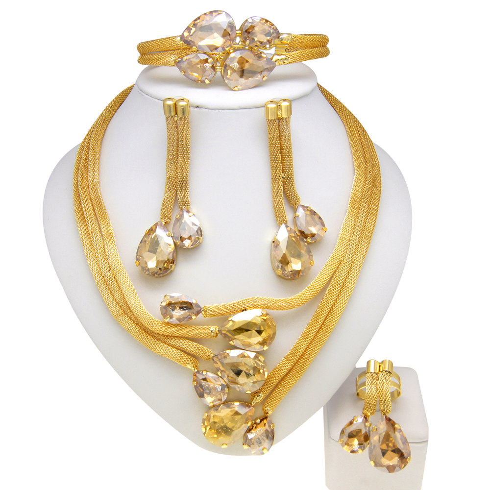 High Quality Bridal Wedding Jewelry Set 18 k Neckless Jewelri Fashion Sets Brazilian Gold Jewelry Wholesale
