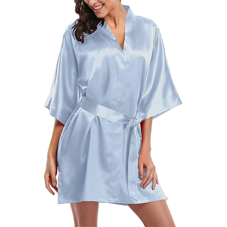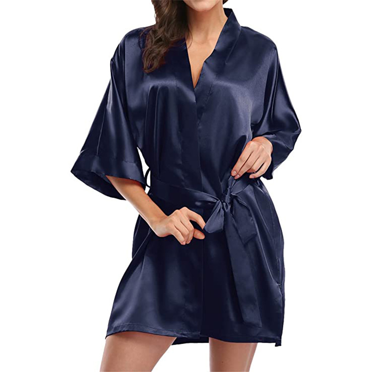 2022 Women's Sleepwear Pure Color Wedding Short Bridesmaid And Bride Robe Silk Kimono Satin Robe