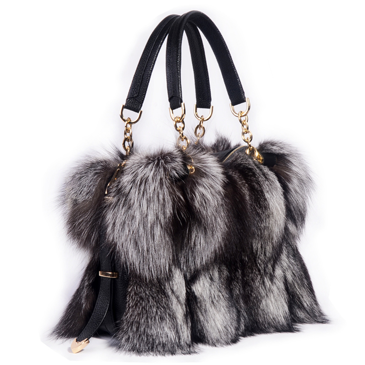 Natural color mix raccoon luxury women cowhide ladies fashion raccoon fur handbags