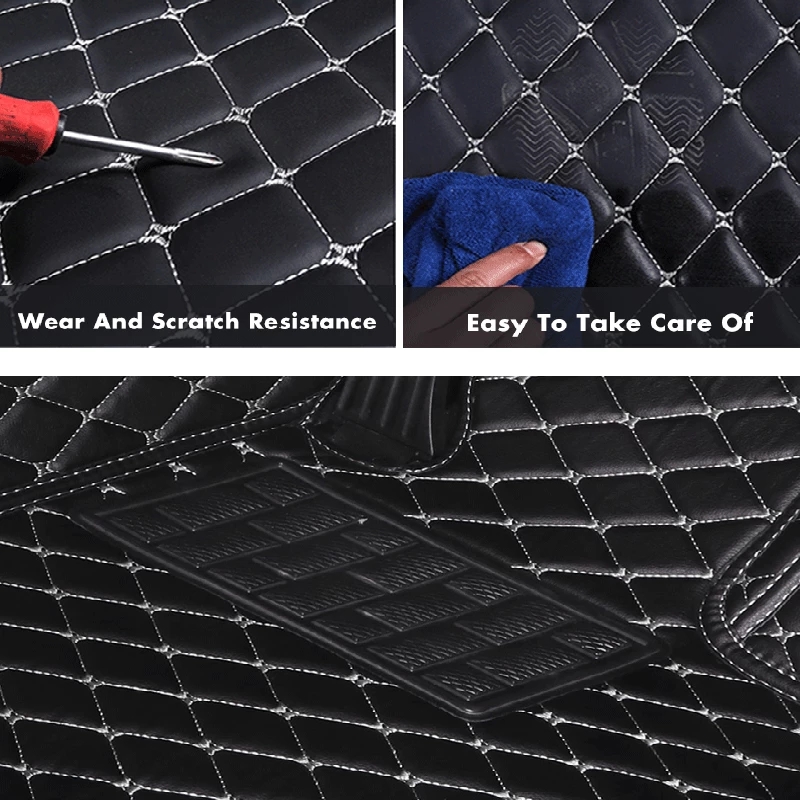 Material | 5 layer 1.Top Layer Car Mat : Extra Durable Eco Leather 2.Second Layer Car Mat: Soft Memory Foam for added comfort 3.Third Layer Car Mat: Hard Wear Polypropylene resin 4.Fourth Layer Car Mat: Soft Durable Sponge 5.Fifth Layer Car Mat: Honeycomb Anti-Skid Base with Velcro Mix |