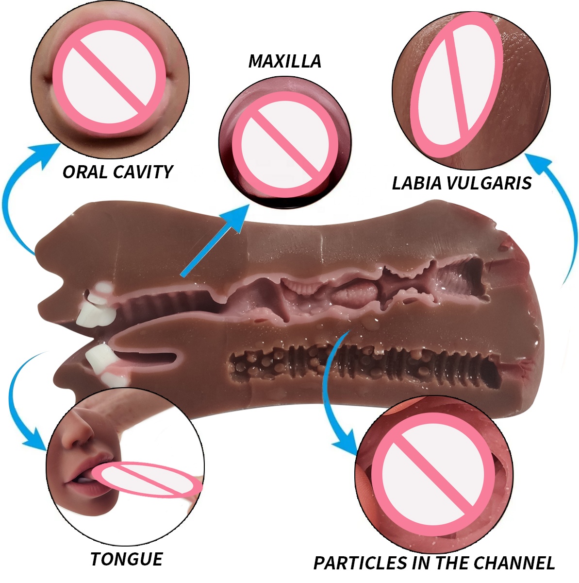 Feature | 1.Three Channels.Realistic Vaginal, Mouth and Anus ,Three Hole .Mouth ,Vagina & Ass sex,High quality Teeth and Tongue inside 2.Phthalate-free,Non-toxic,Safe 3.Soft rubber real touch feeling 4.Waterproof ,Tight,Portable 5.Surface Non Greasy ,4D Fold inner Design 6.High Imitation Entrance Design 7.The First Latex Flavor ,Fragrance Title 8.High Imitation Virtual Skin ,Soft and Realistic 9.Free Logo Label and Bar code Printing Service |