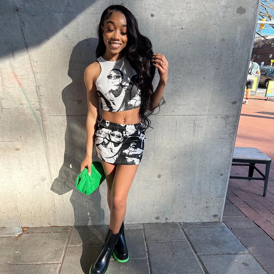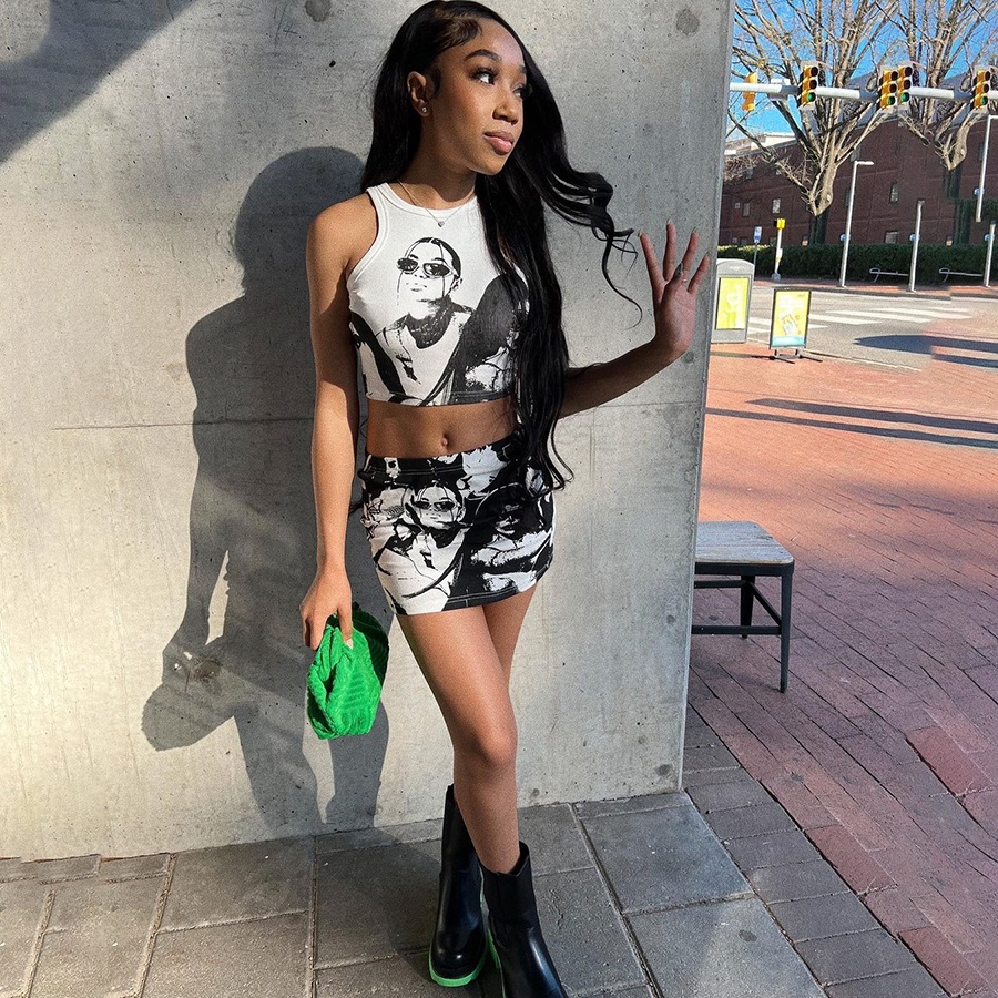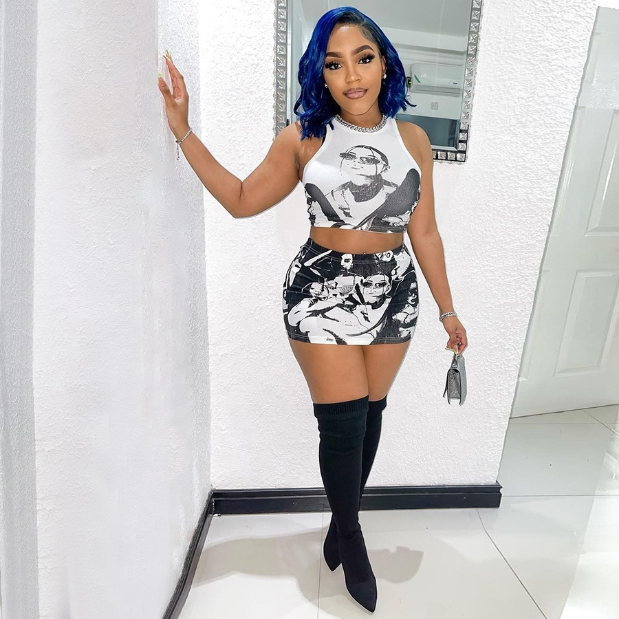 Hot Sexy Street Fashion Suit Slim O-neck Sleeveless Vest Womens Clothing+skinny Hot Skirt Figure Printing Sets 2 Piece Set Women