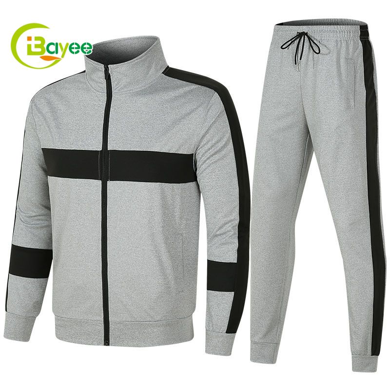 Custom 2Piece Polyester Made Male Good Quality Gym Clothing Tracksuit Slim Fit For Men Jogging Sportswear With Side Stripe | ||||||||