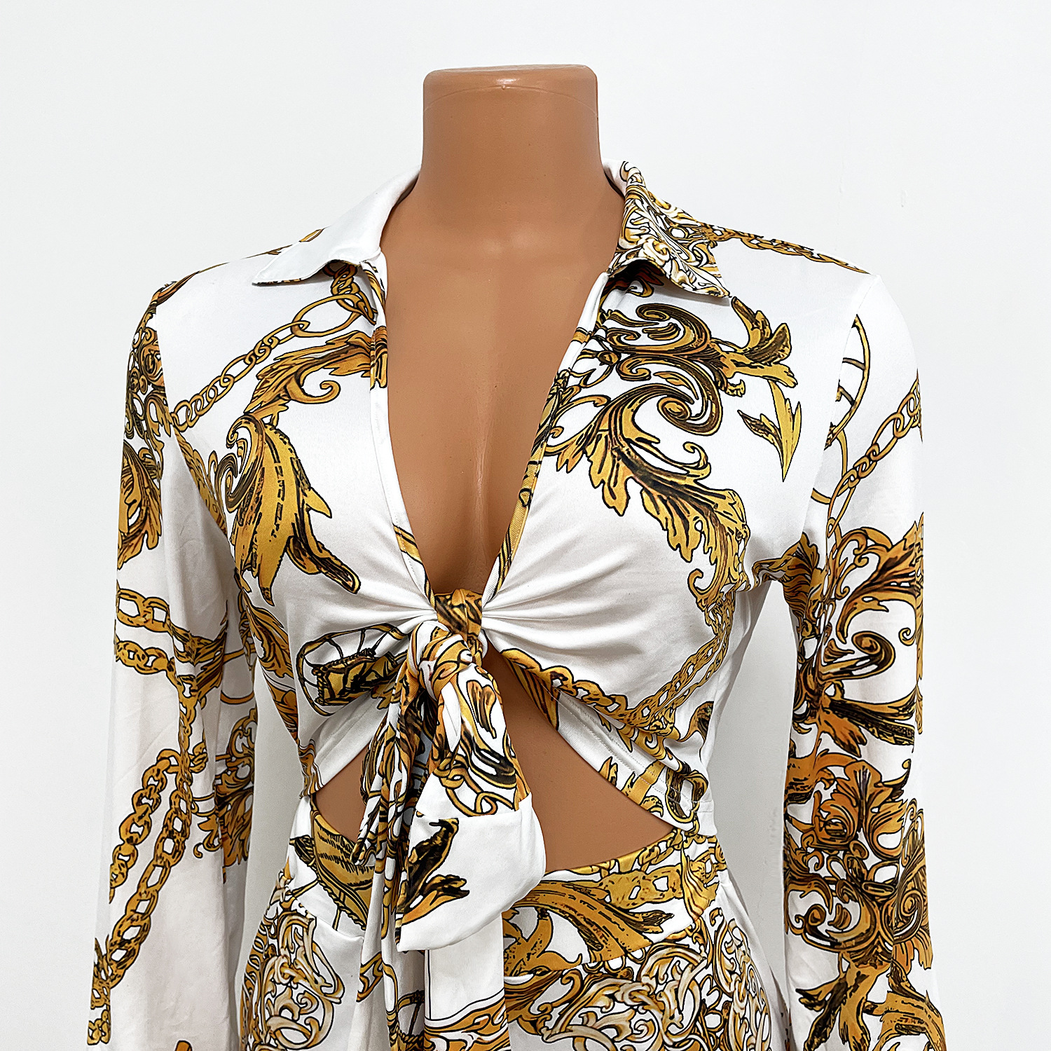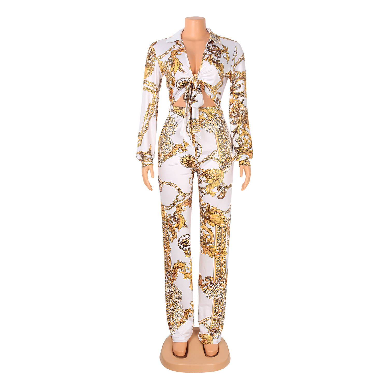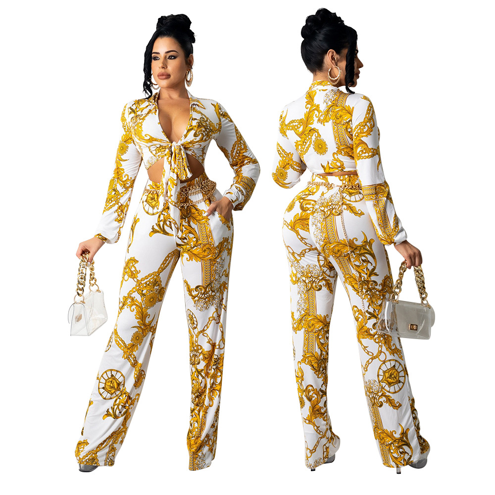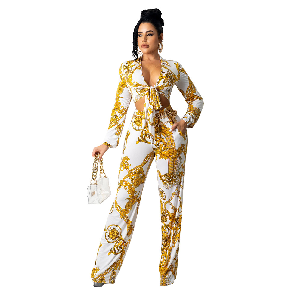 long sleeve v-neck two piece set clothing women print pants sehe fashion