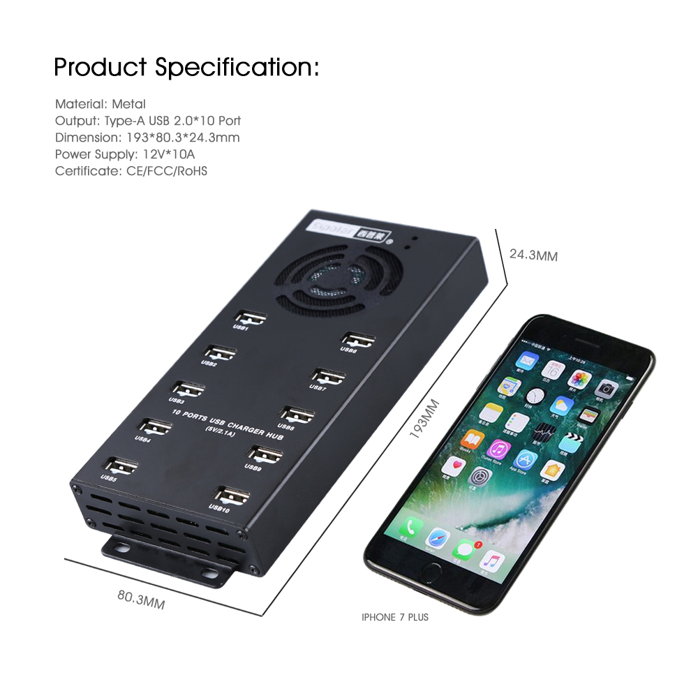 1.A-400 industrial grade 10 ports 2.0 USB hub,support 10pcs devices connection at the same time.Best for SNS Facebook marketing,educational industrial,charging cart,Data syncs transfer rate up to 480Mbps.