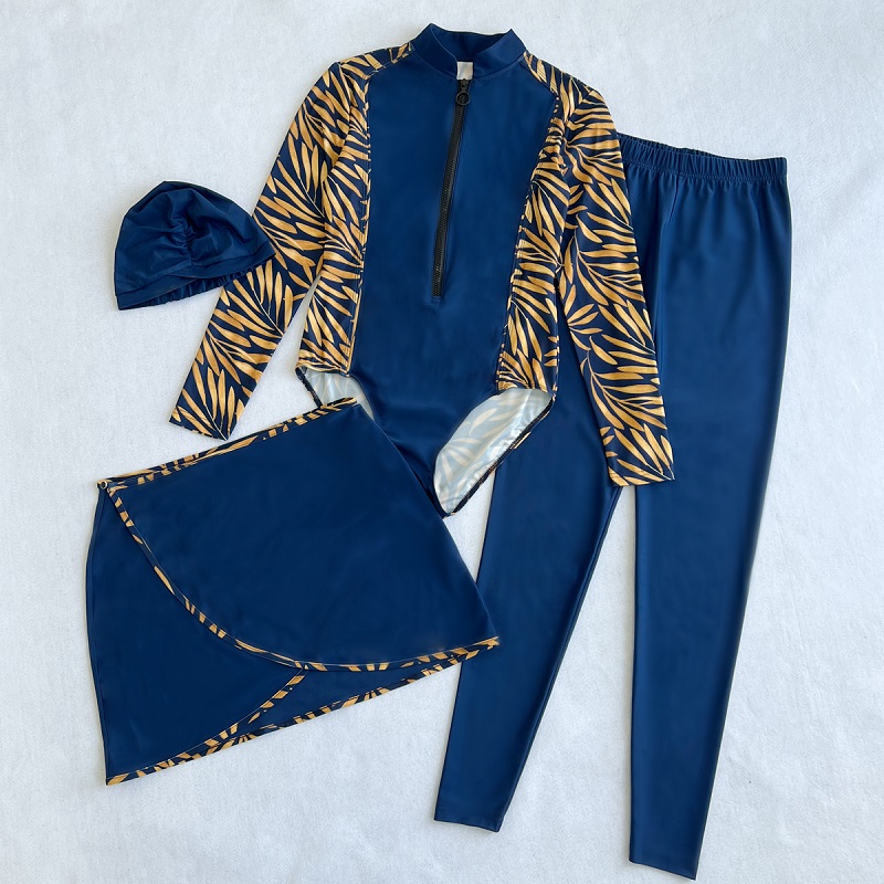 Title | 2022 New 4PCS Islamic Swim Suit Long-sleeved tropical printing burkinis modest muslim swimwear women |