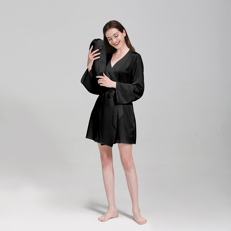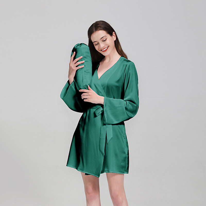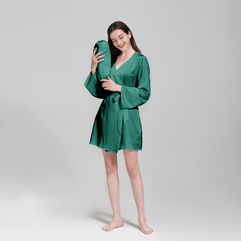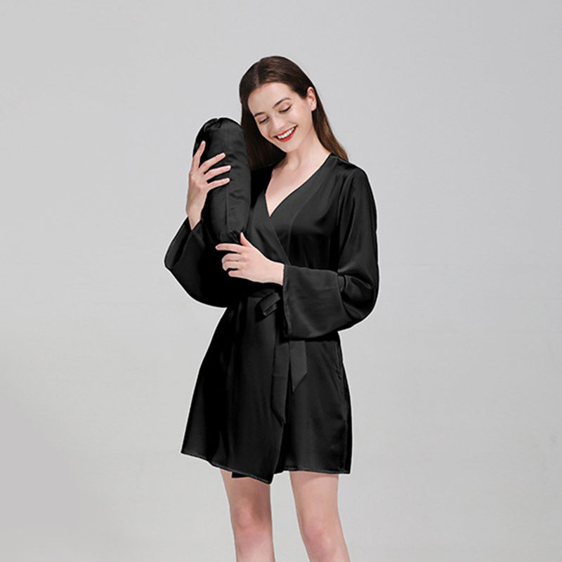 Women's Kimono Robes Short Mulberry Silk Gown Luxury Bridal Party Robe With Oblique V-neck