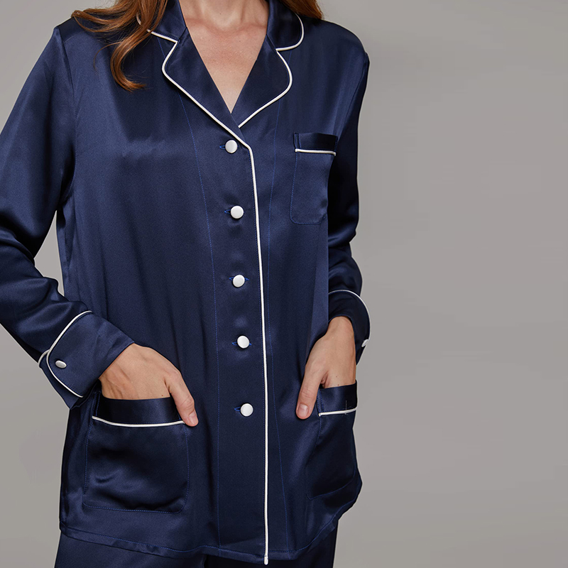 Fashion Women's Mublerry Silk Pajamas Sleepwear Long And Short Button-down Pj Set