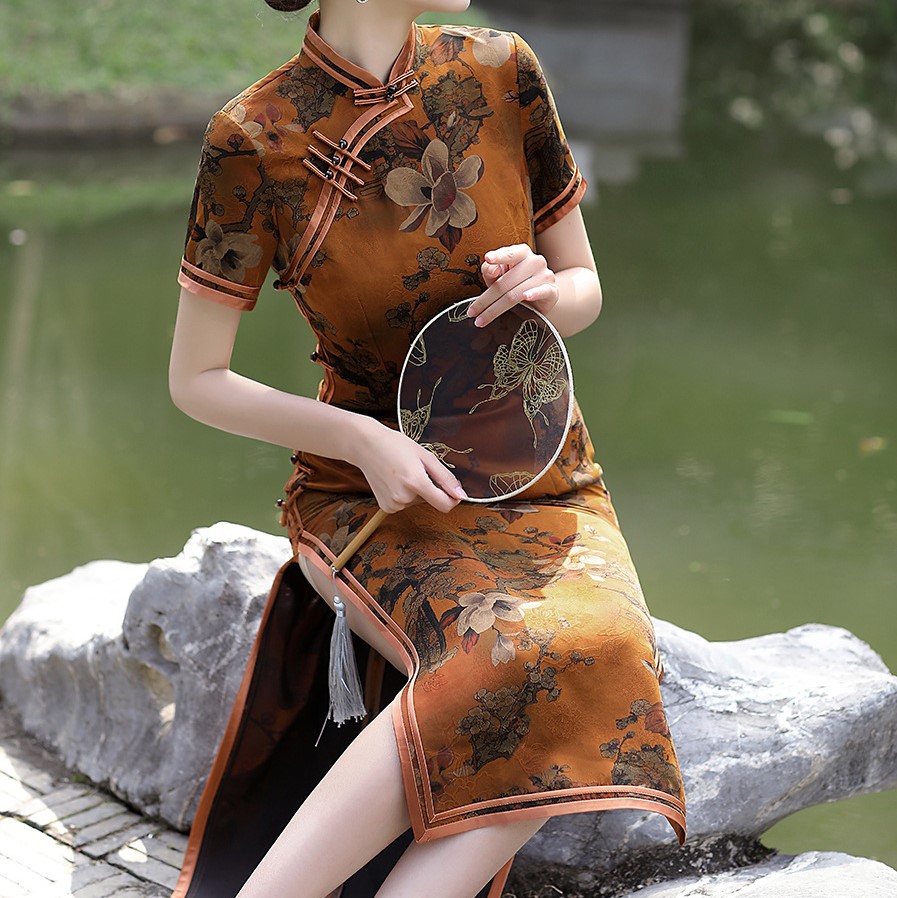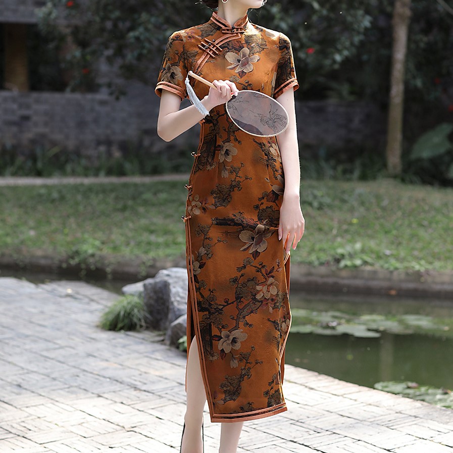 Solid Color Elegant Retro Chinese Style Cheongsam Women's Clothing