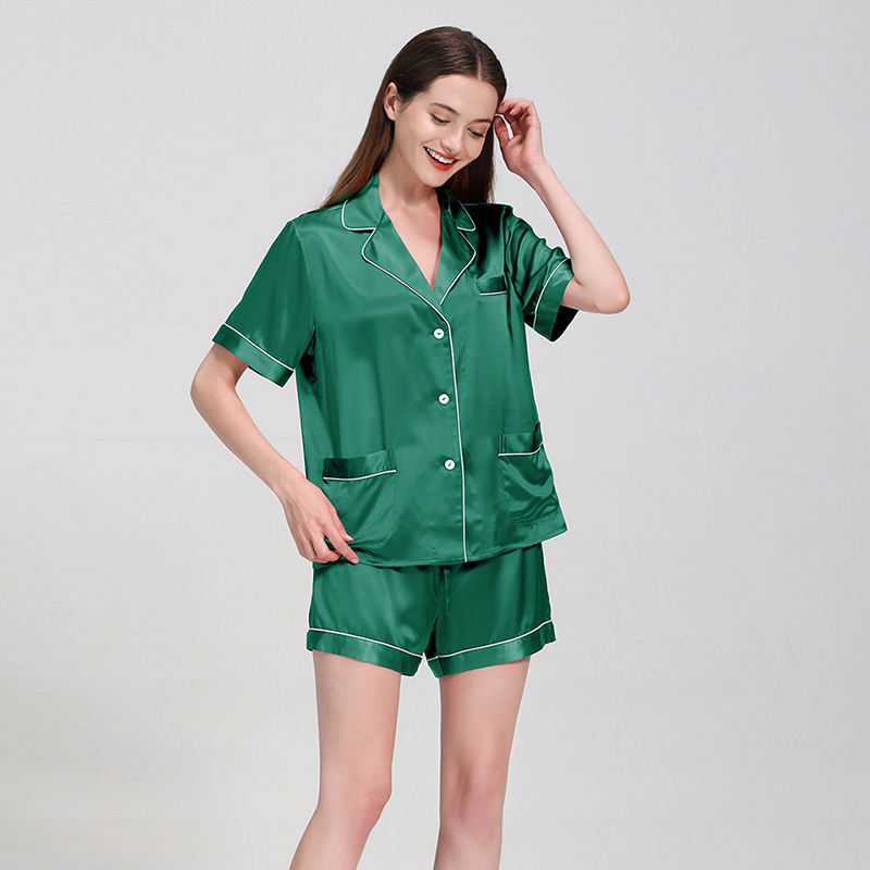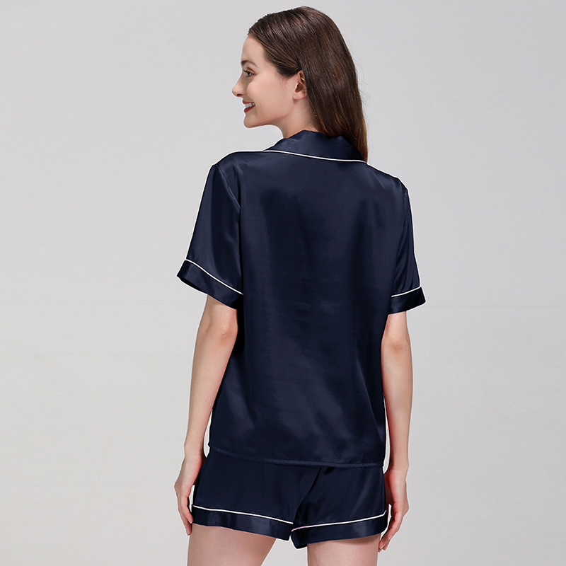22 Momme Sleep Wear Women Pajama Silk Luxe Designers Short Sleeves And Shorts Black Real Mulberry Silk Satin Pajamas Set