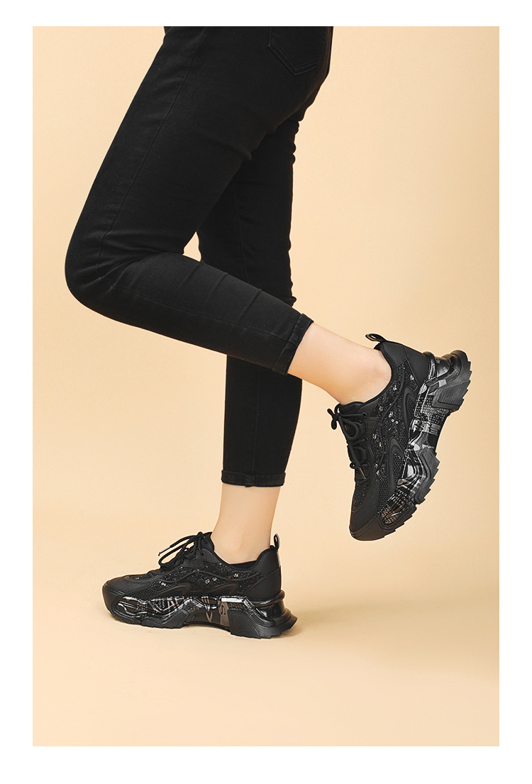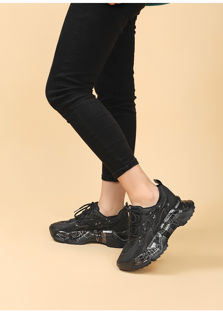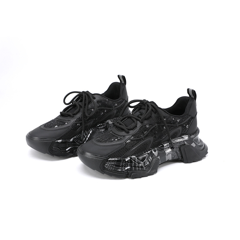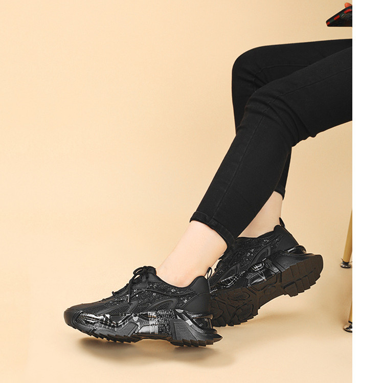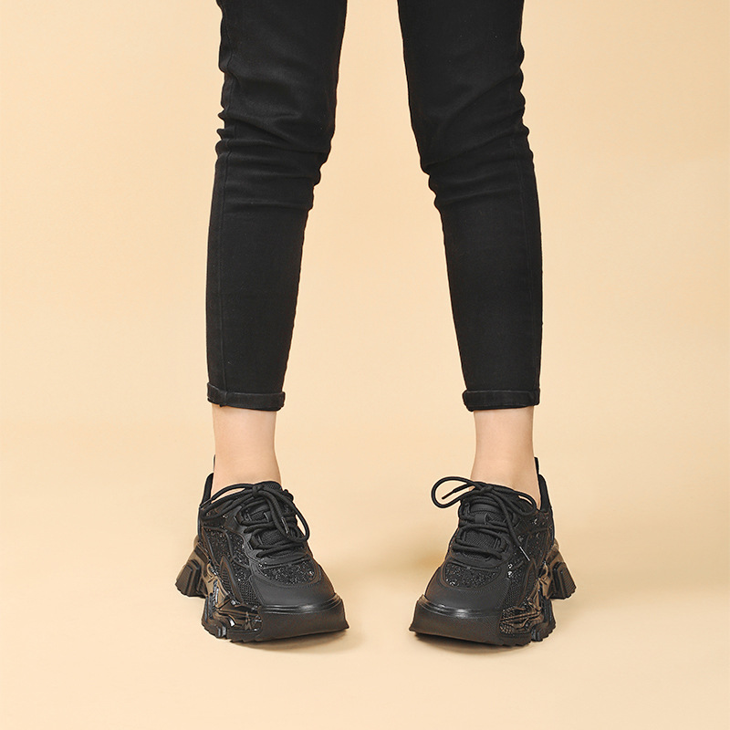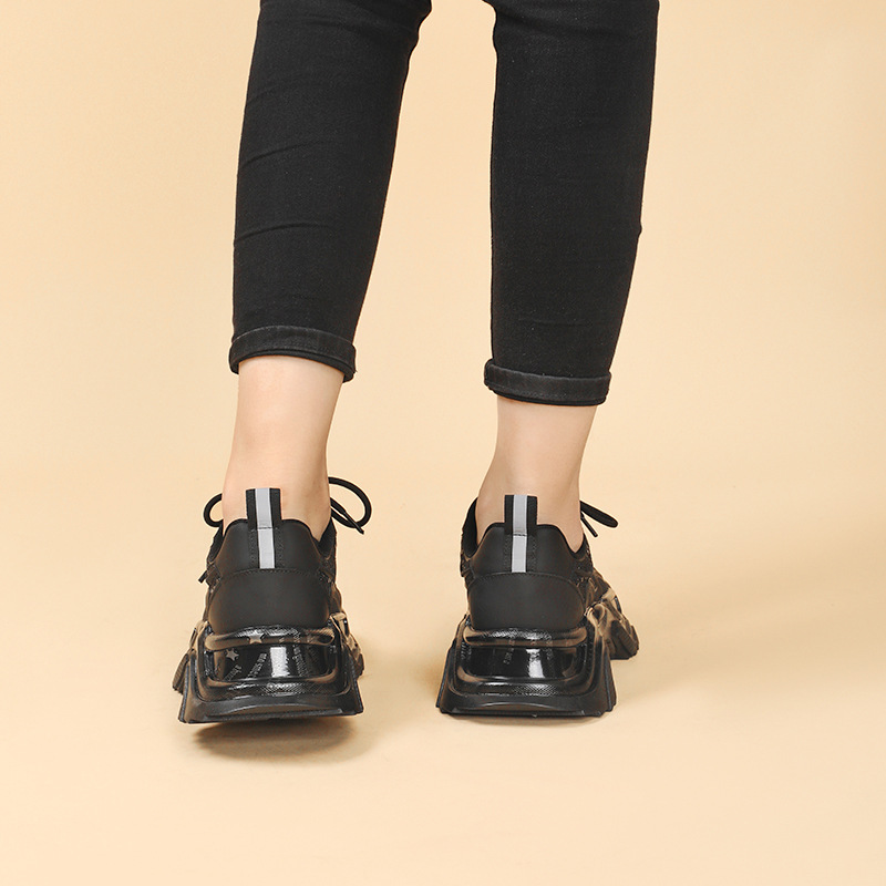 Youth Student Chunky Thick Sole Lace Up Slip Resistant Footwear Luxury Fashion Leather Trend Black Girl Ladies Shoes For Women