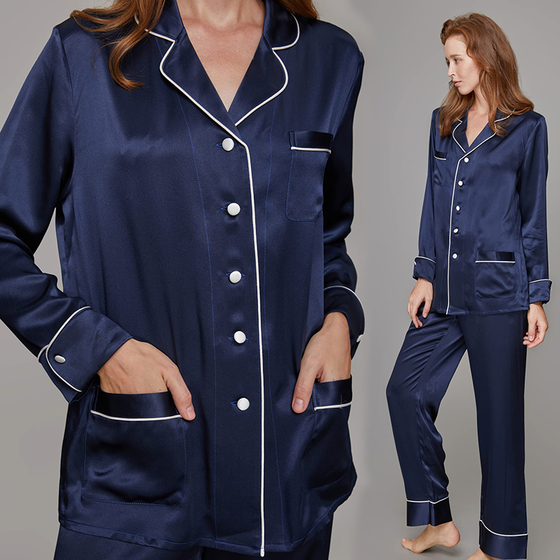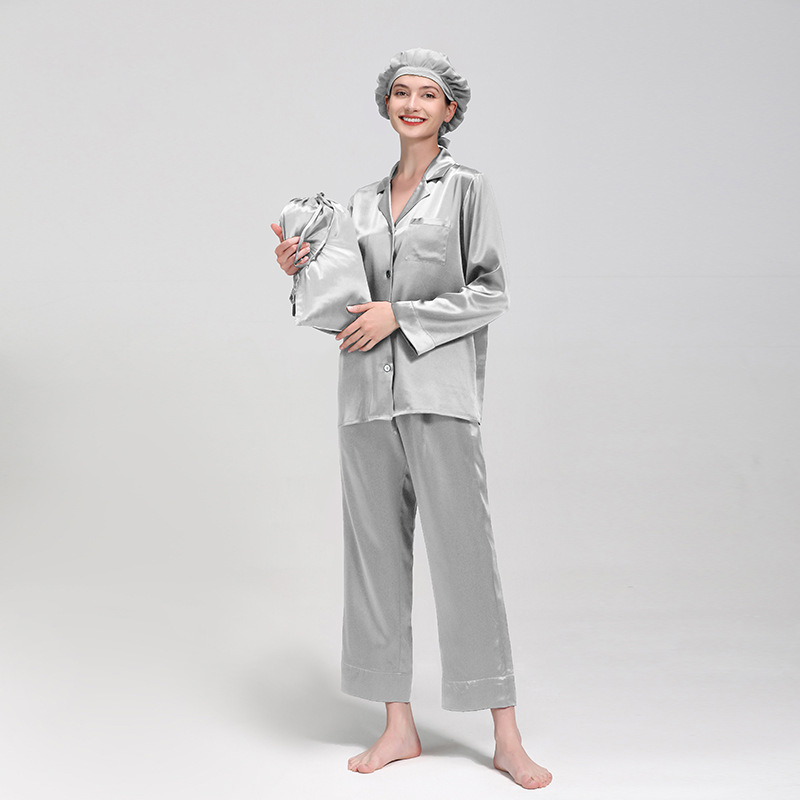 Skin Friendly Women Cozy Sleepwear Long Sleeve Mulberry 100% Silk Pajamas Set