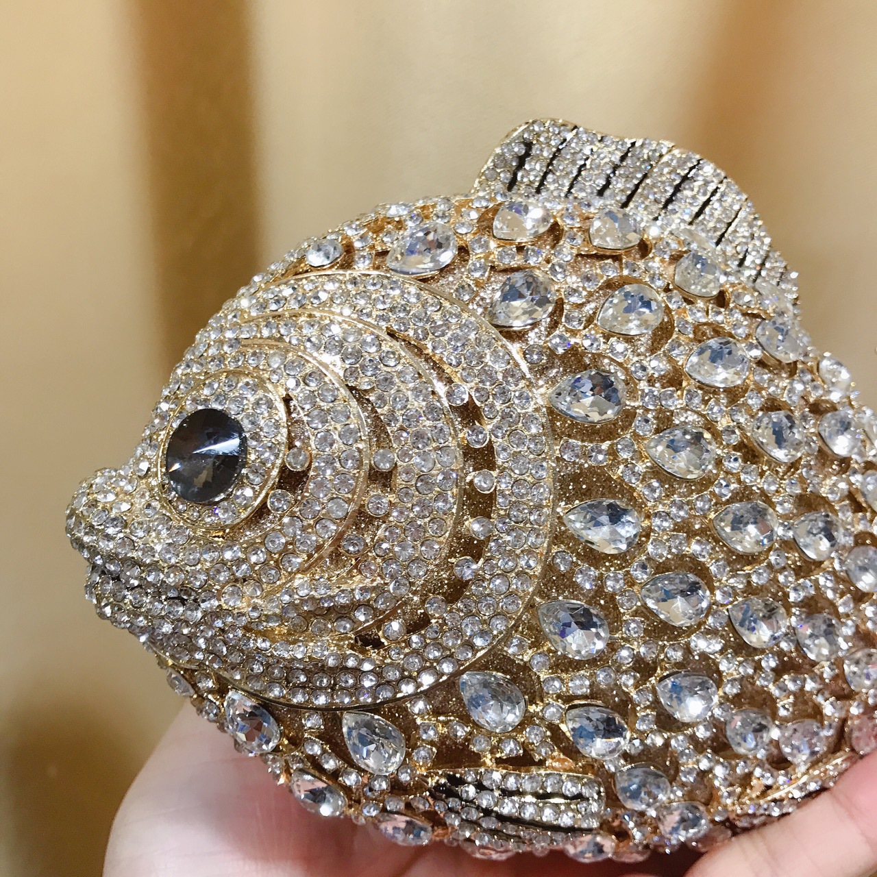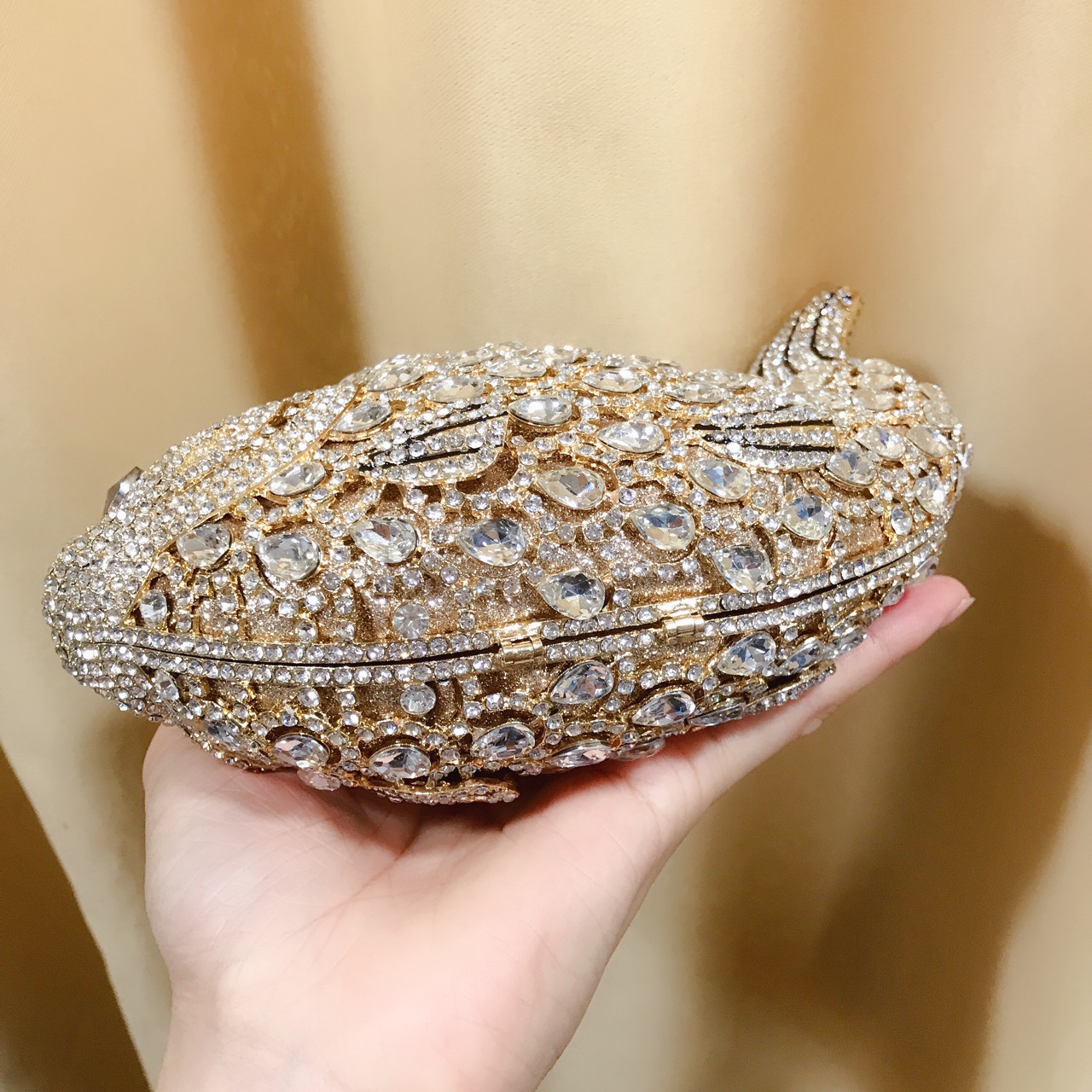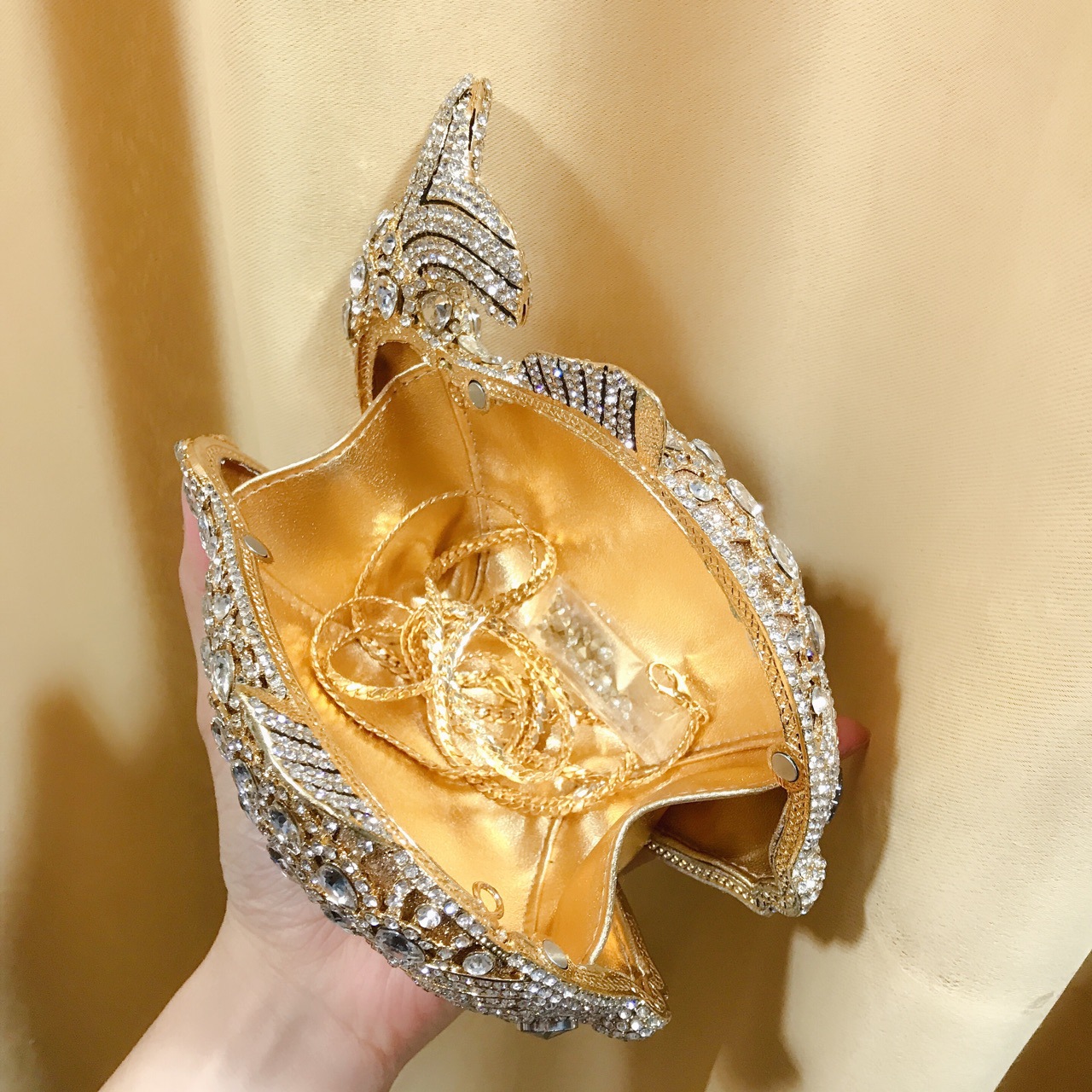 Black Rose Fashion Goldfish-shaped Diamond-encrusted Dinner Bag Cross-border Rhinestone Clutch Bag Purse Full Diamond Clutch Bag