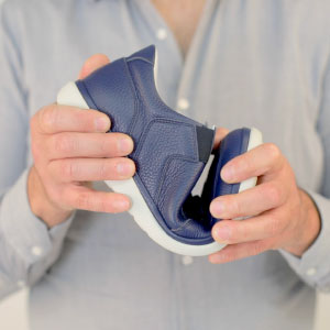 The ''California'' slip-last method (with no cutting or stitching involved) ensures maximum results because it uses the finest hides worked exclusively by craftsmen. The softest choice leathers are neither stretched nor cemented to the bottom of the last: expert hands mould a highly flexible shoe around the upper. A new piece of leather ''architecture'' that keeps its original suppleness year after year.