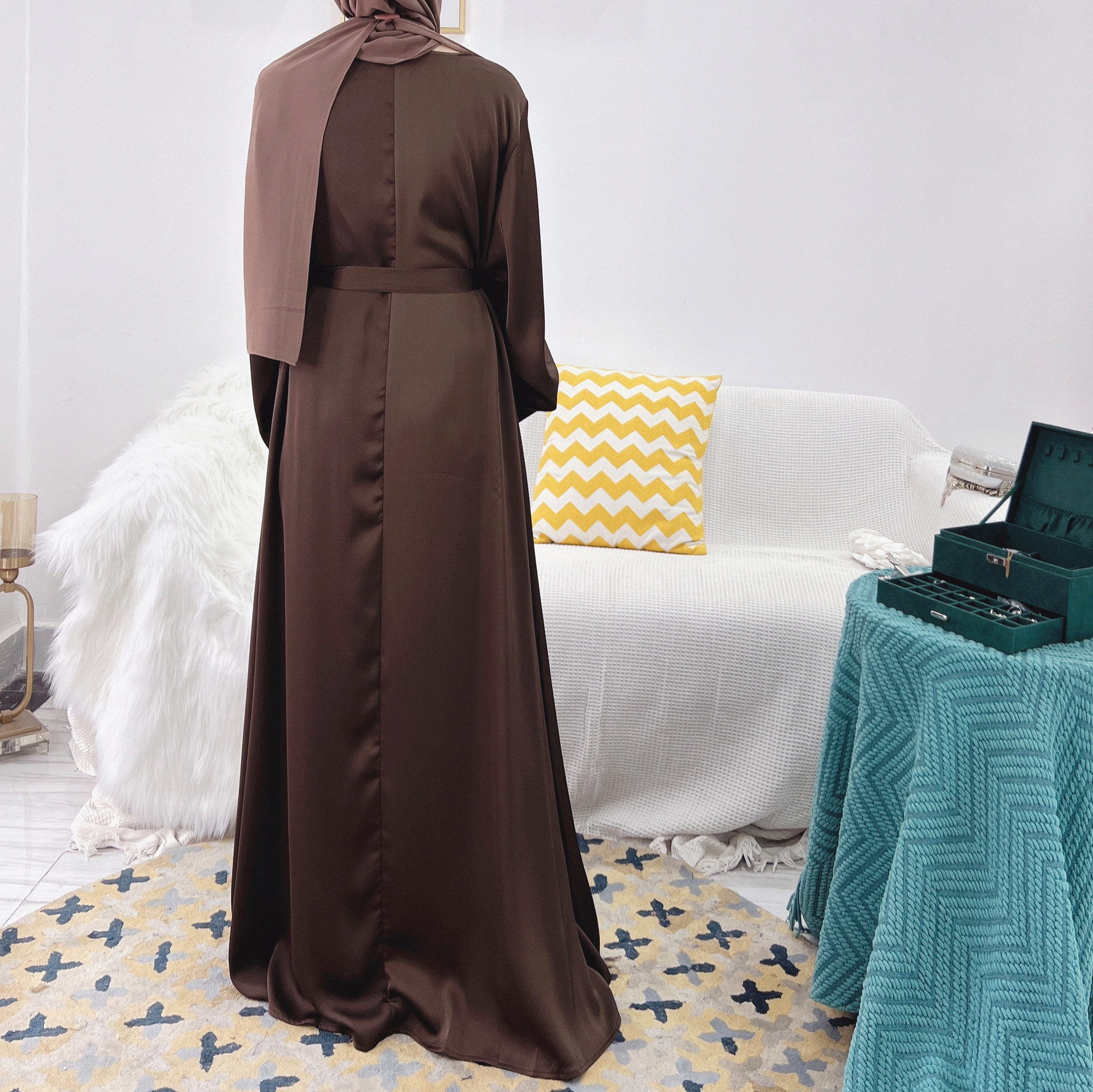 Wholesale traditional Muslim Clothing Turkey Solid Islamic Abaya Dubai Long Muslim dress For Women With Belt