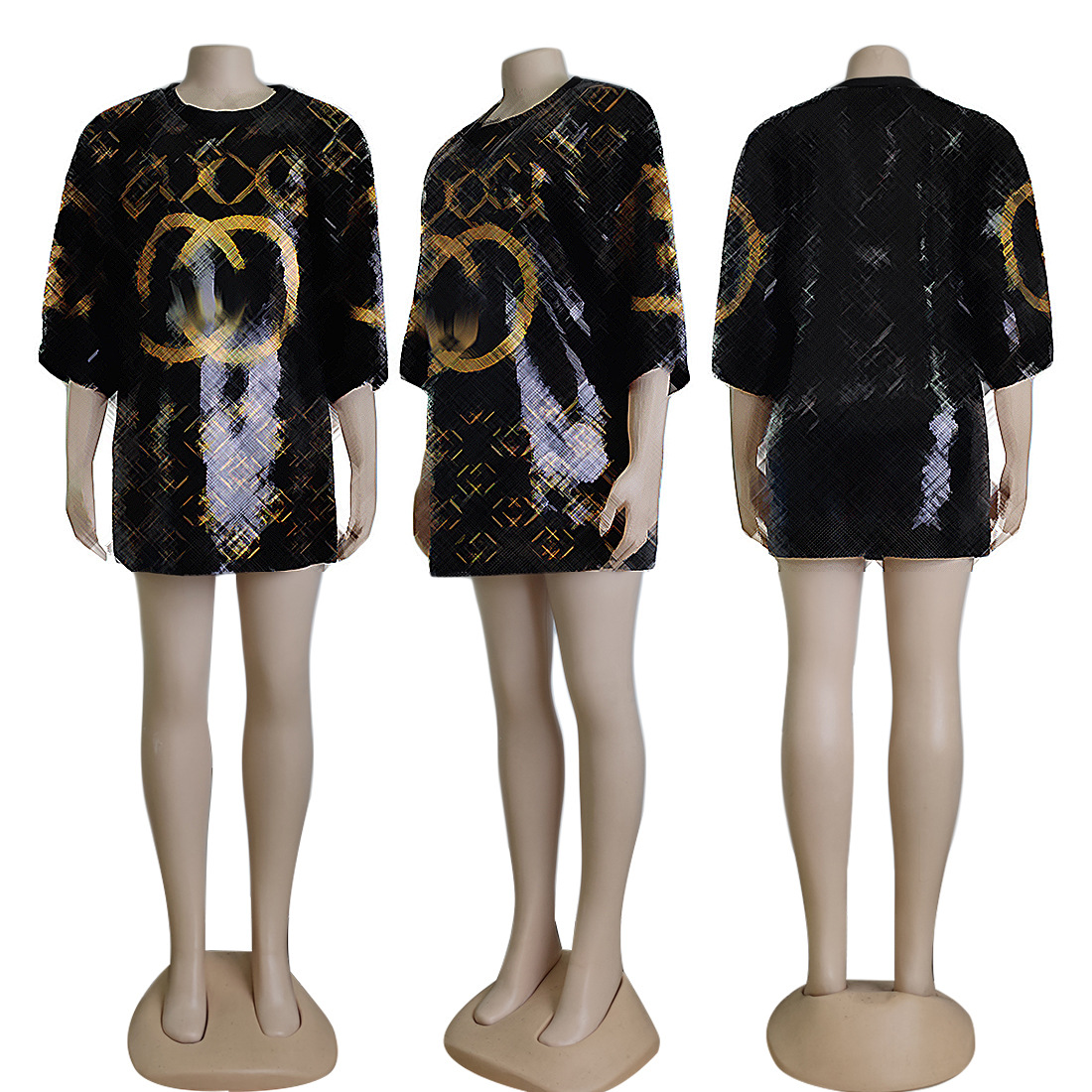 W0010 Fashion Short Sleeve Shiny Sequins Loose Summer Dress Casual Brand Women's Clothing