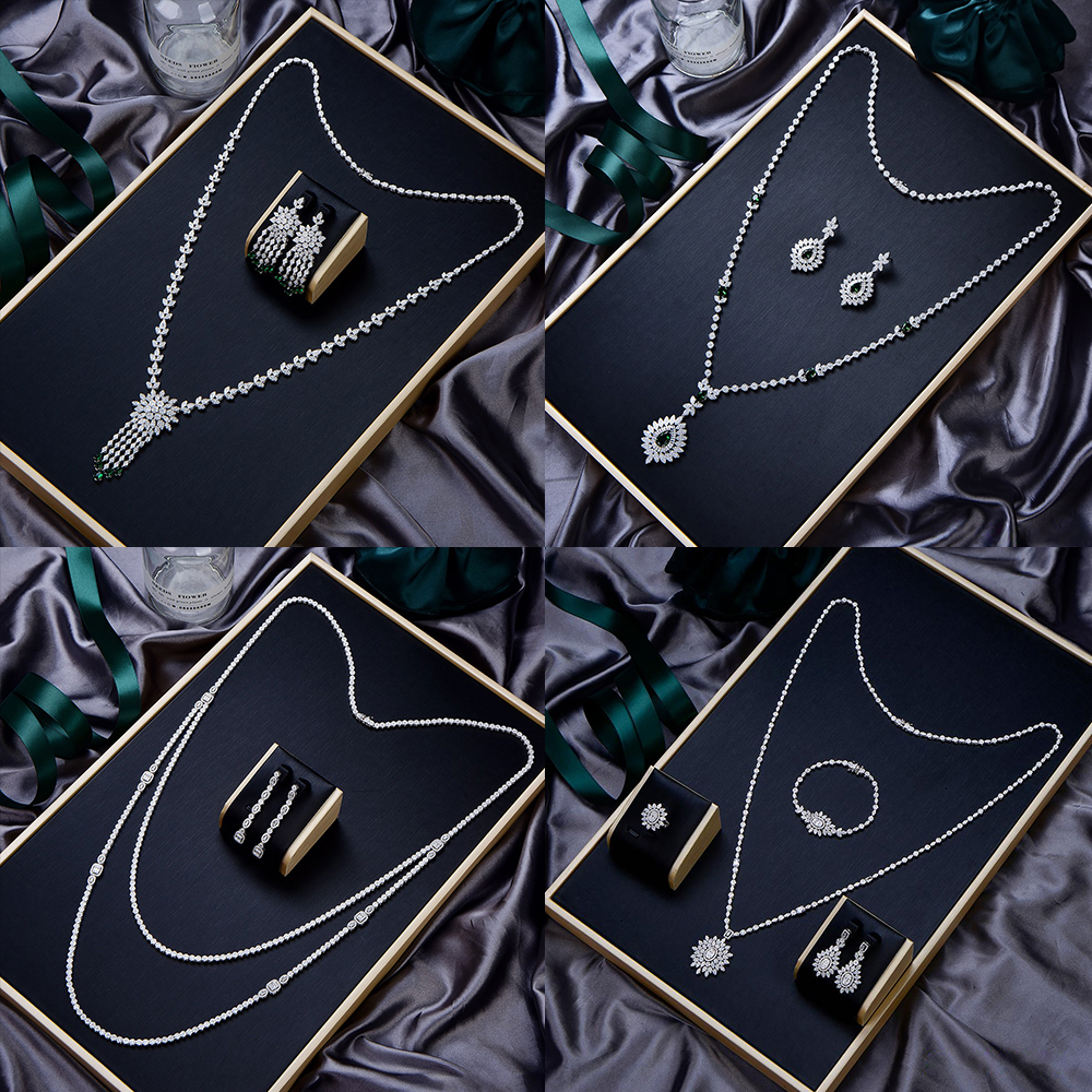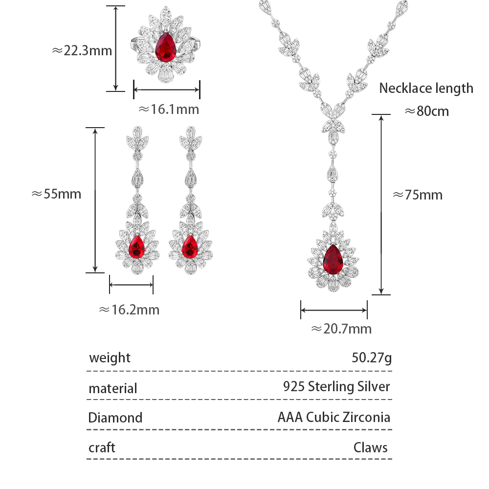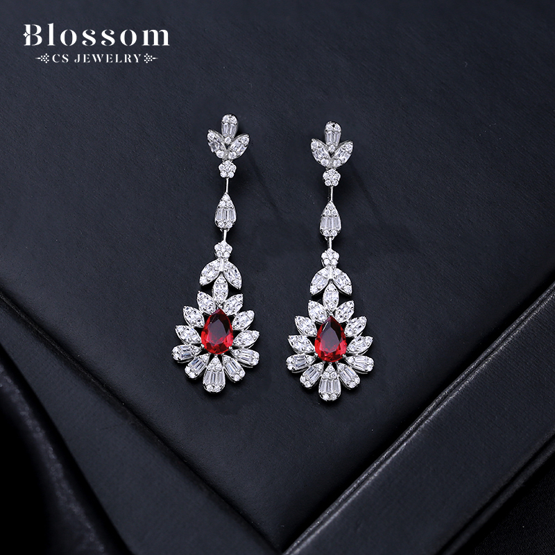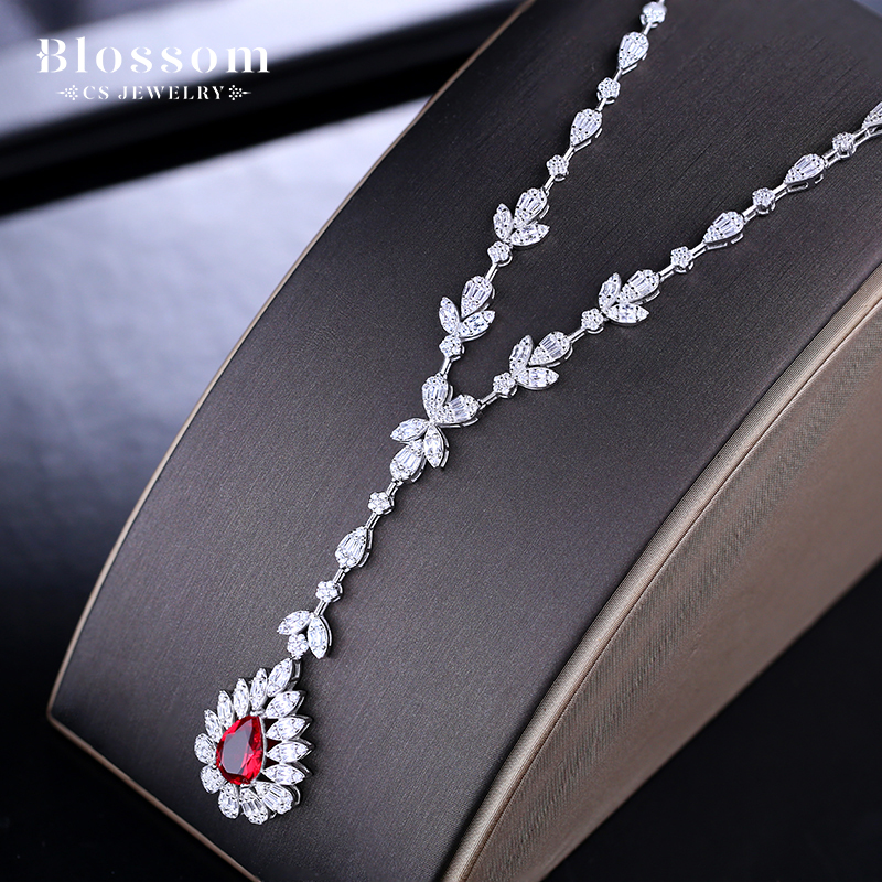 Blossom CS Jewelry Wholesale Dubai Sterling Silver 925 Zircon Sweater Chain Gemstone Necklace Earrings Jewelry Sets for Women