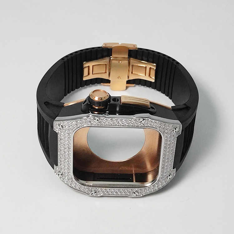 Protection Case 45mm For Apple Watch Series 7/8 Rose Gold Middle Frame With Diamond Watch Case
