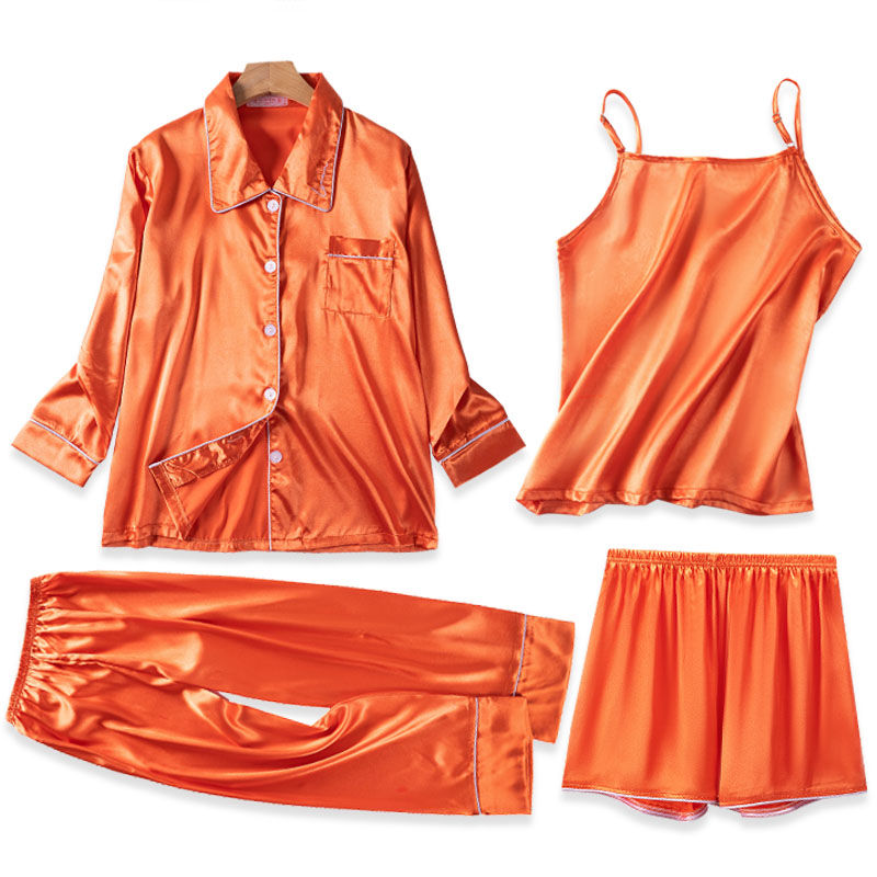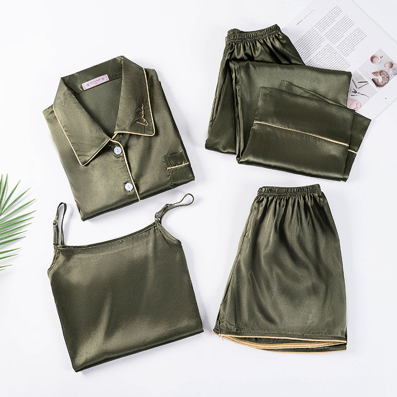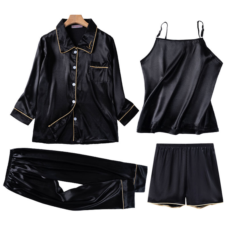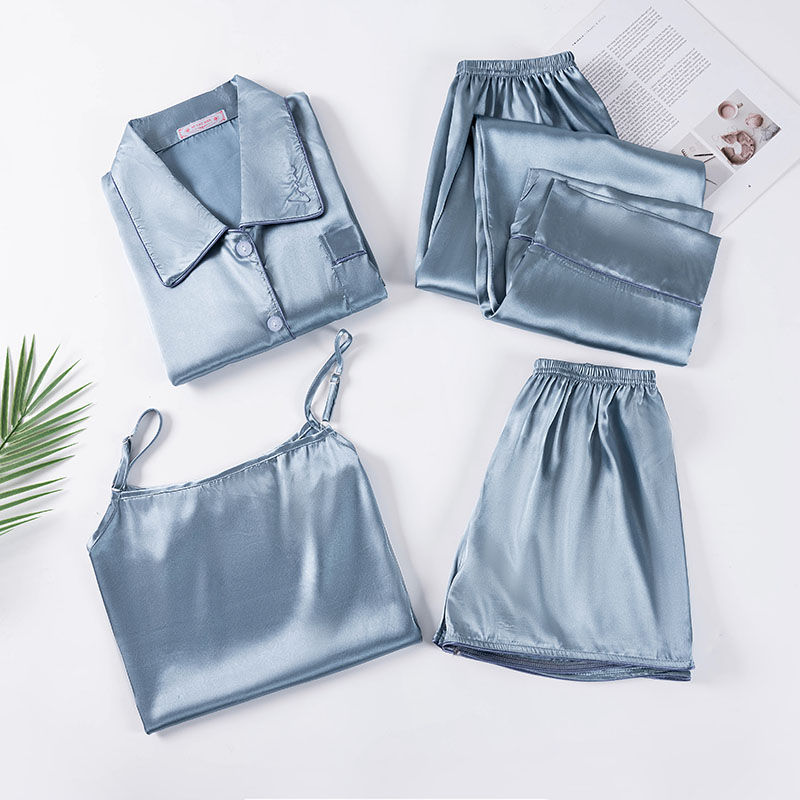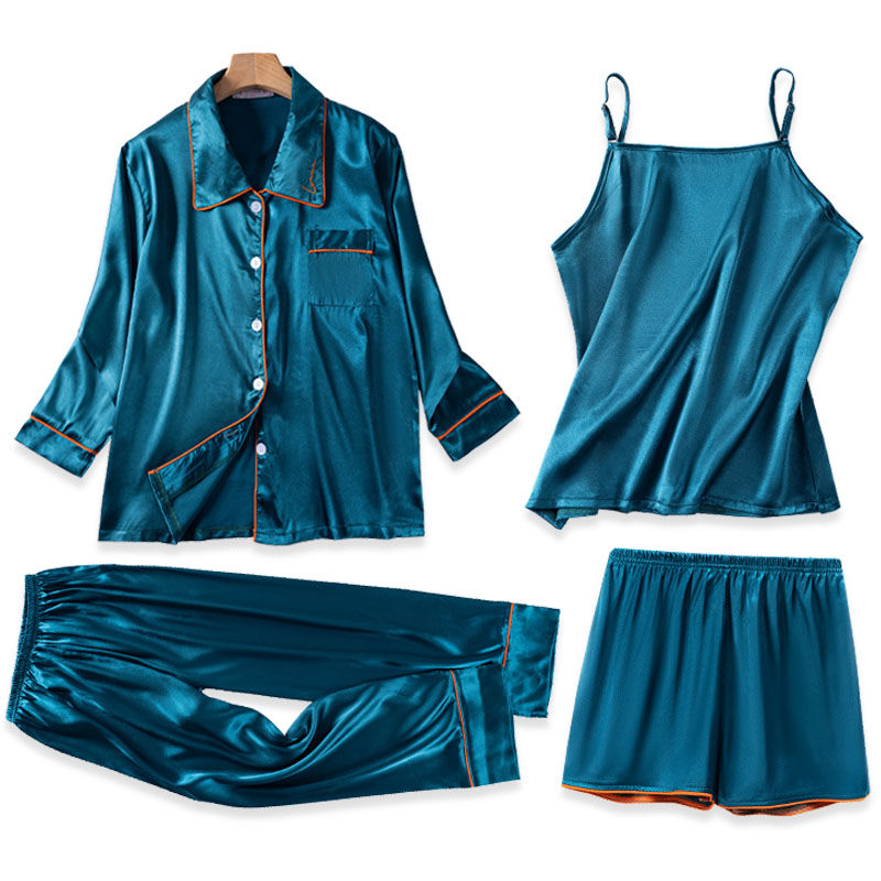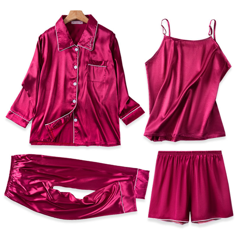 Basic information | Wholesale leisure silk Pyjamas nighty Loungewear snug Pajamas Solid Color Satin Sleepwear 4pcs PJ Set women | |