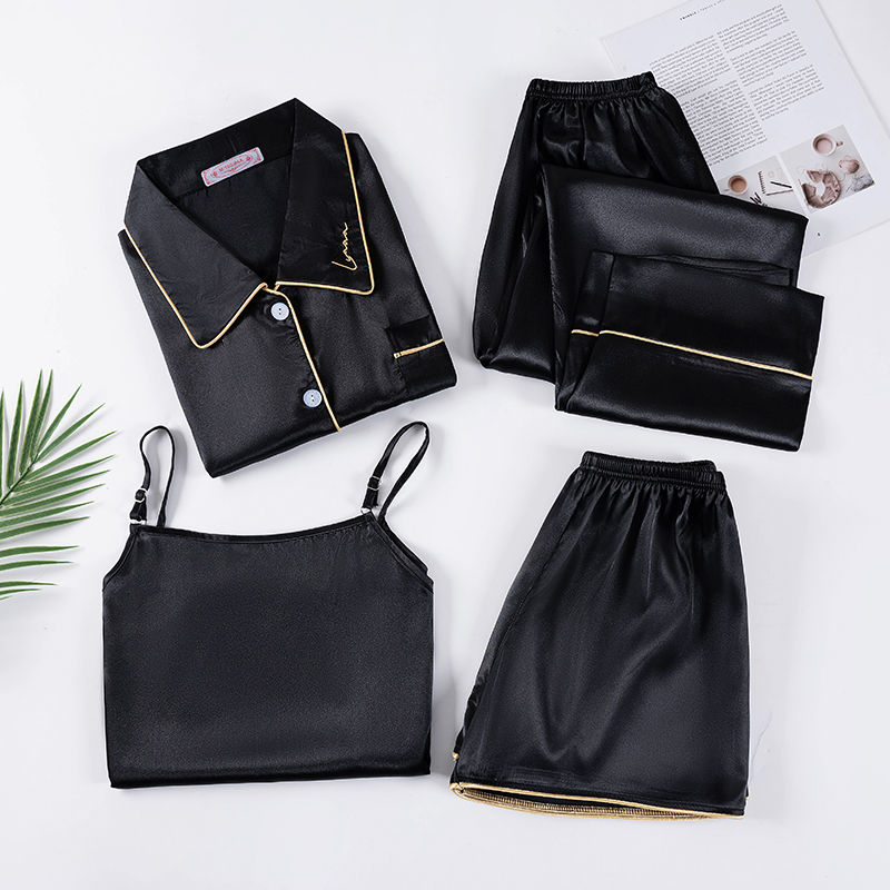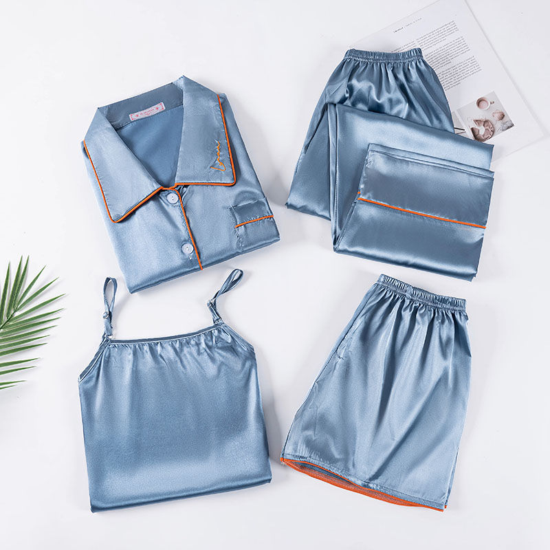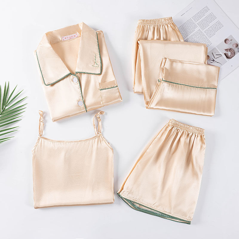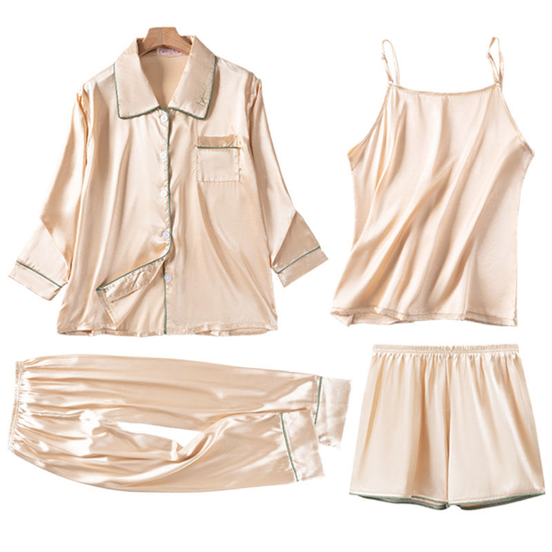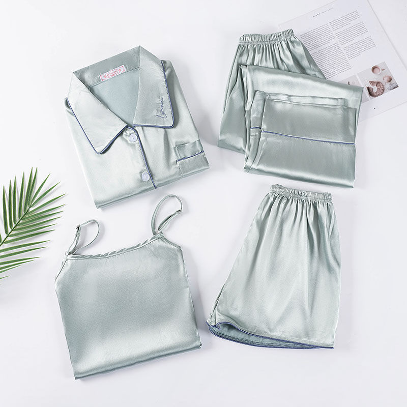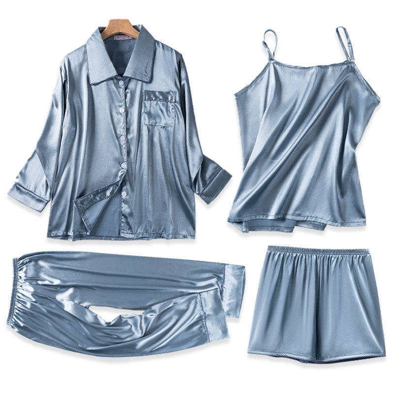 Basic information | Wholesale leisure silk Pyjamas nighty Loungewear snug Pajamas Solid Color Satin Sleepwear 4pcs PJ Set women | |