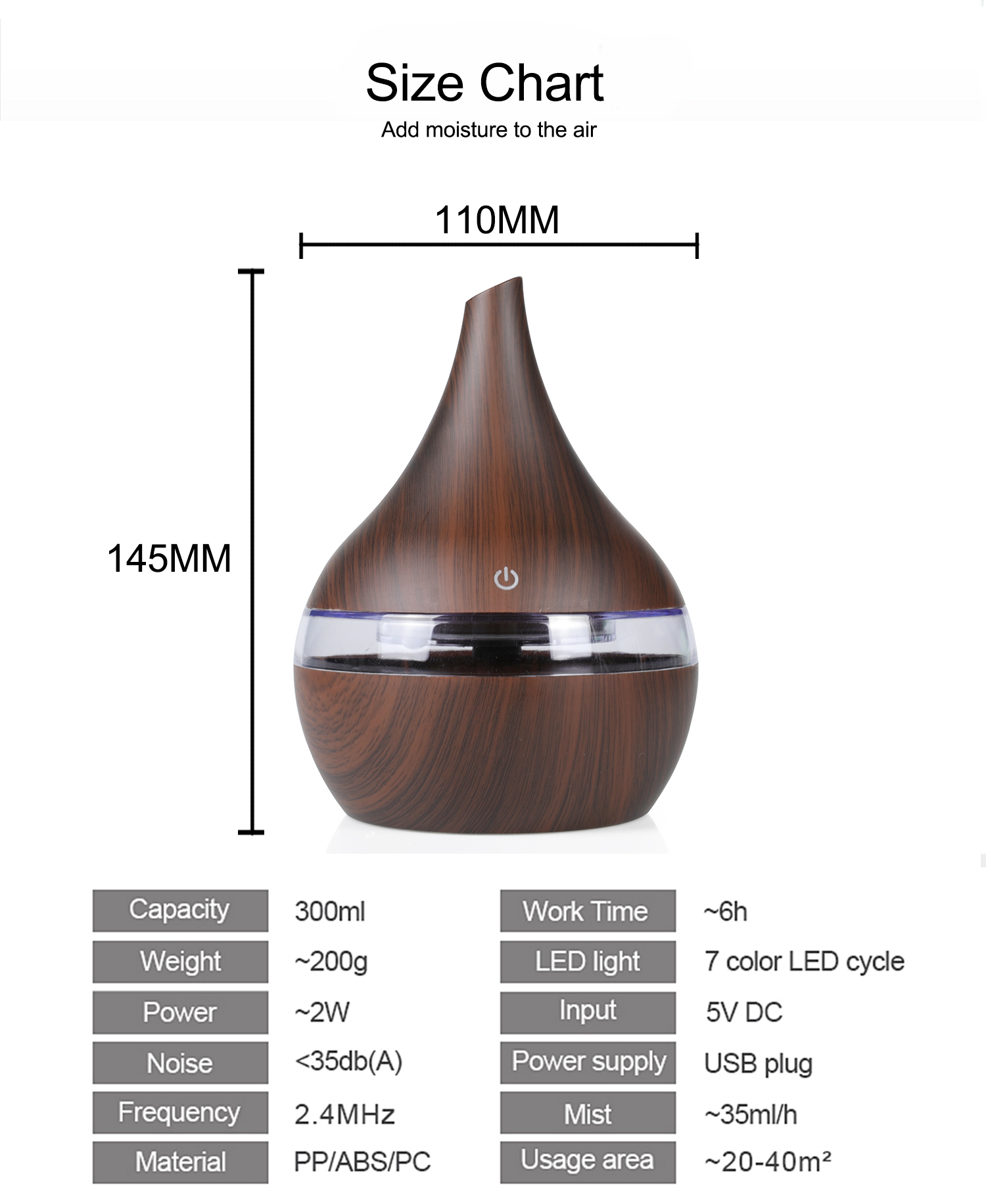 Main Features | 1,Portable desktop humidifier 2,Silent operation/USB power 3,7 colors LED night light 4,One button for all controls 5. 3-5drops essential oils is acceptable |