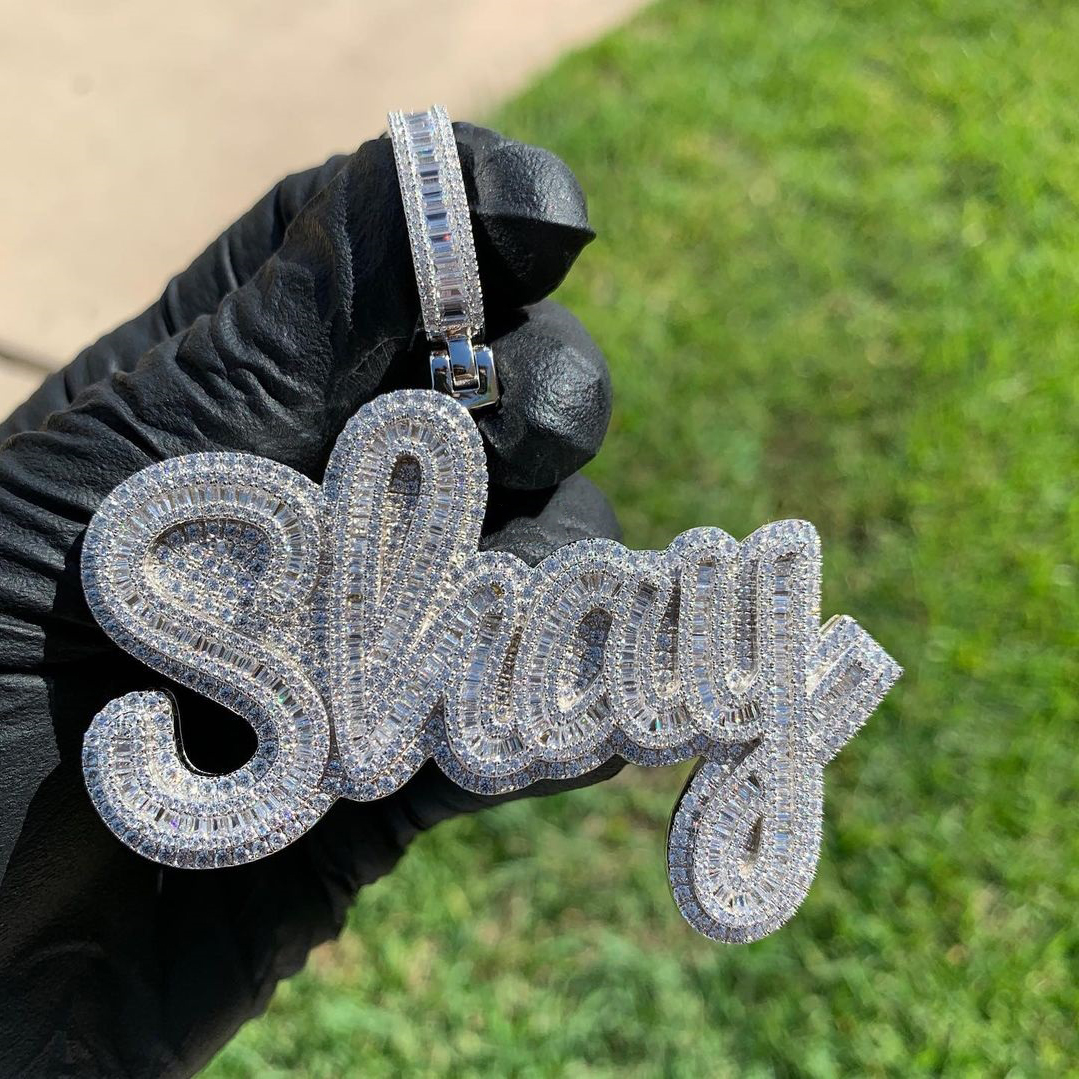 Custom Name Plate Pendant Chain Necklace VVS Moissanite Diamond Cuban Jewelry Custom Name Necklace | ||||||||