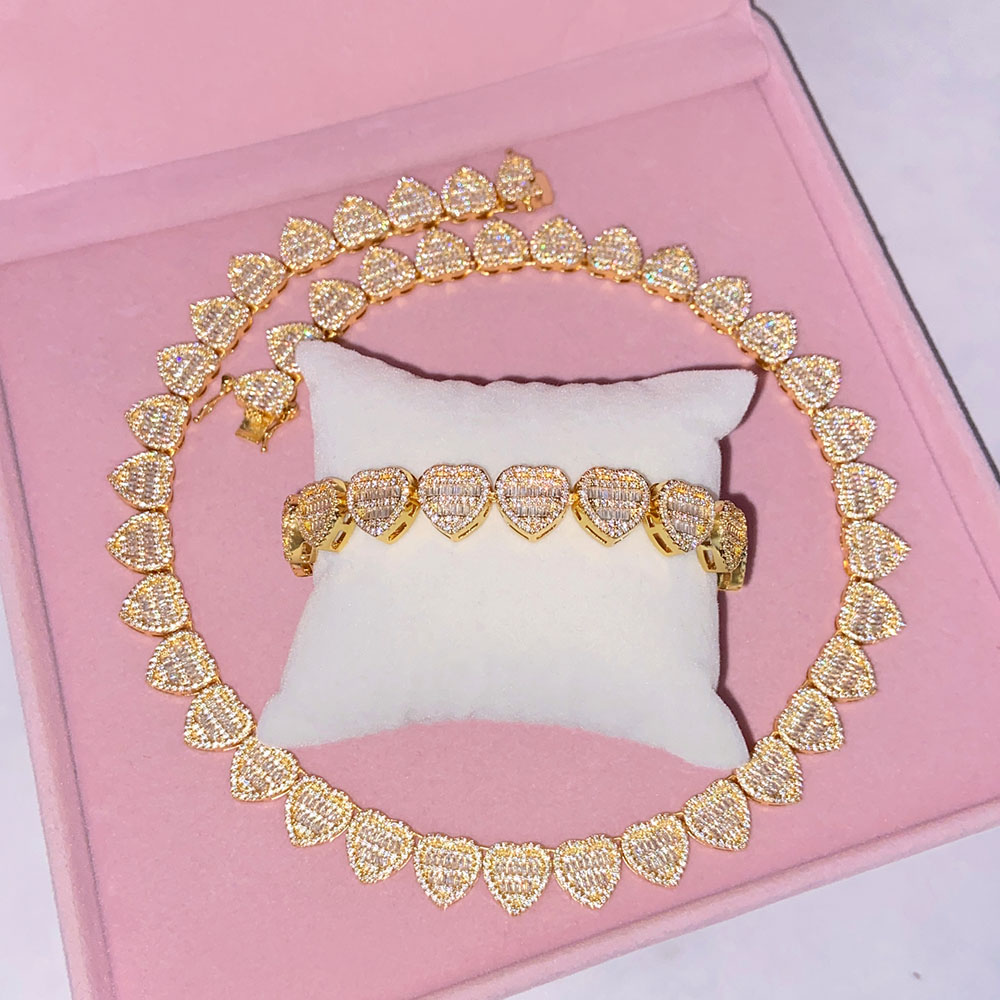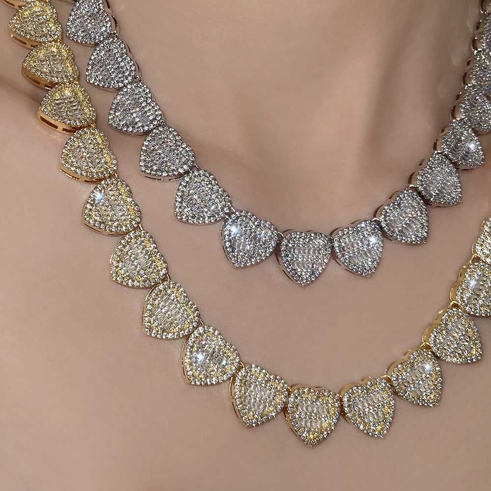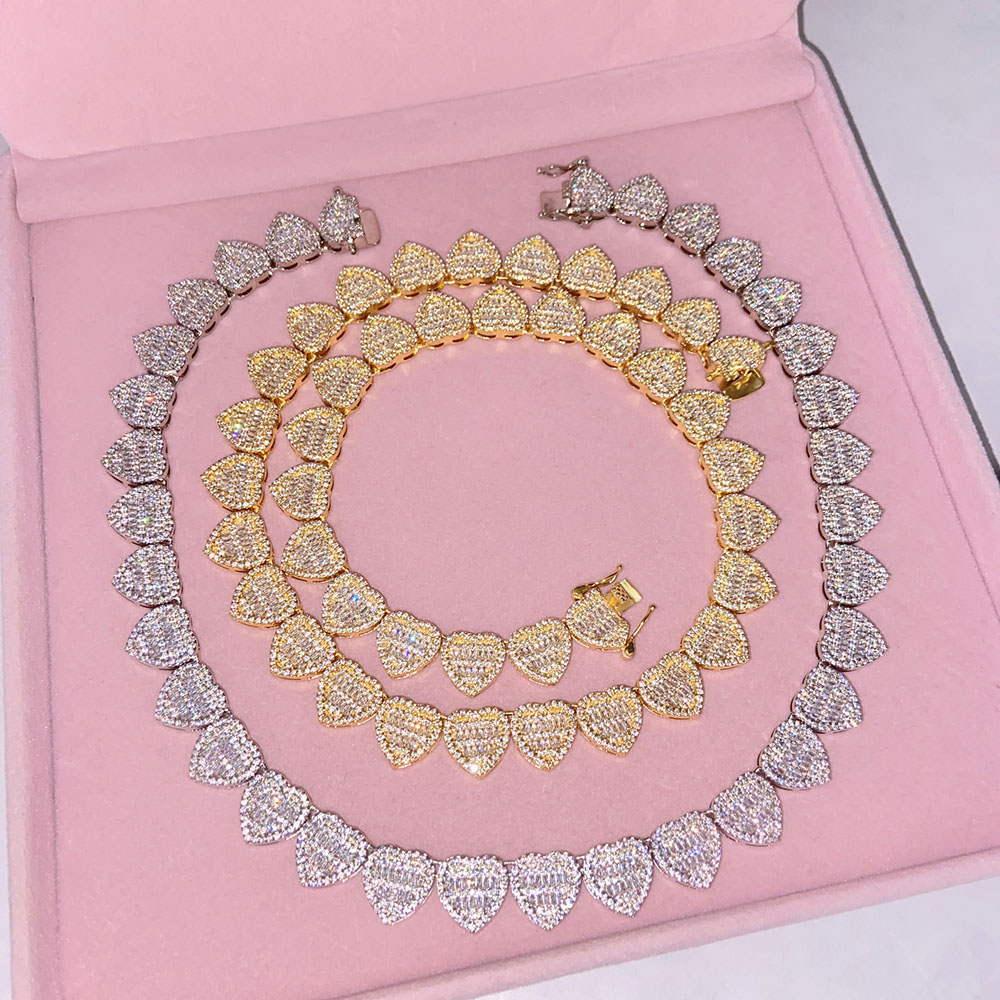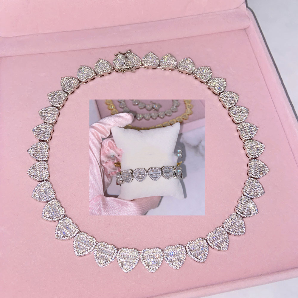 New Baguette Cz Heart Necklace 12mm Full Iced Out Bling Cubic Zirconia Charm Choker Fashion For Women Hip Hop Jewelry