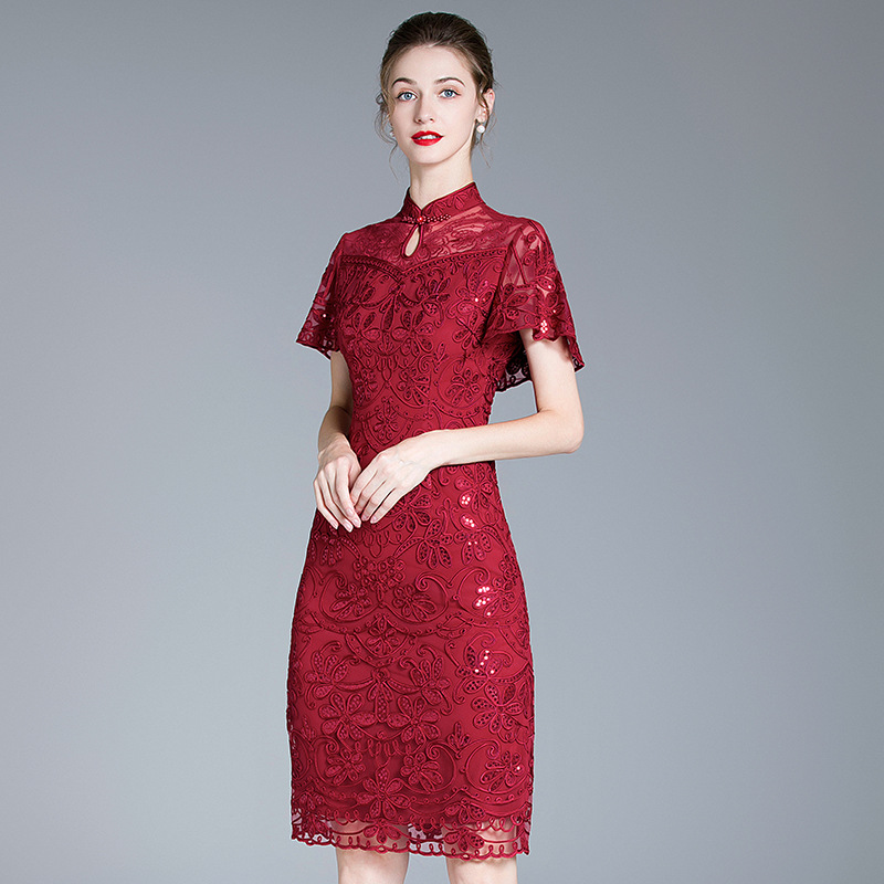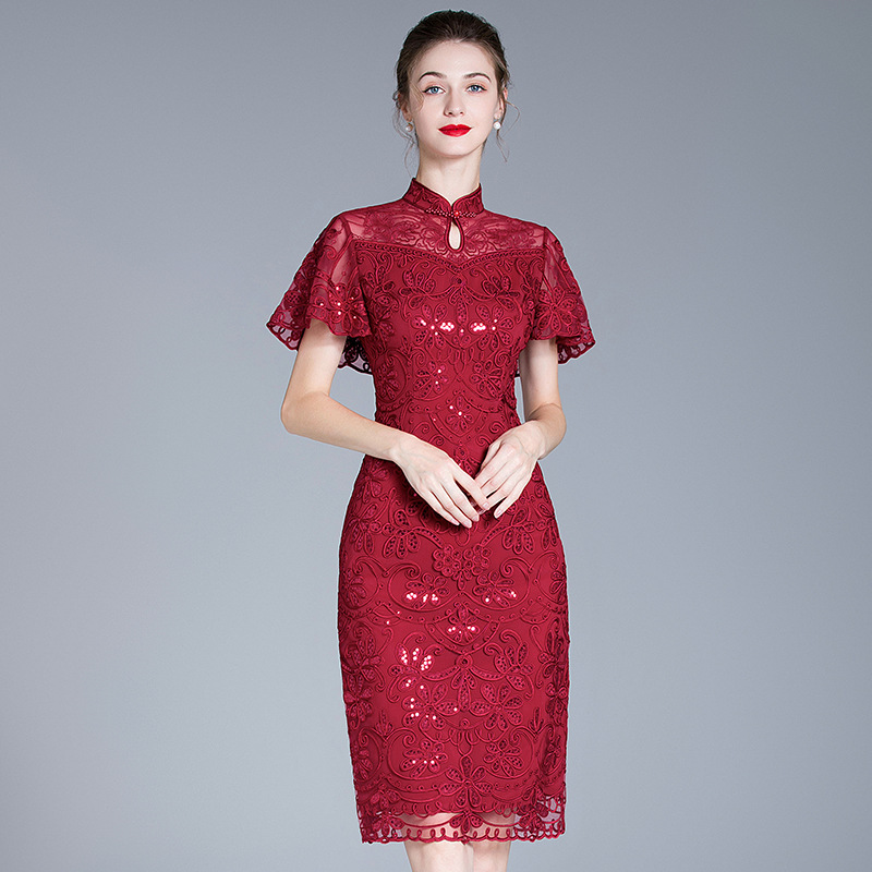 Best Quality High End Formal High Split Red Cheongsam Evening Party Dresses