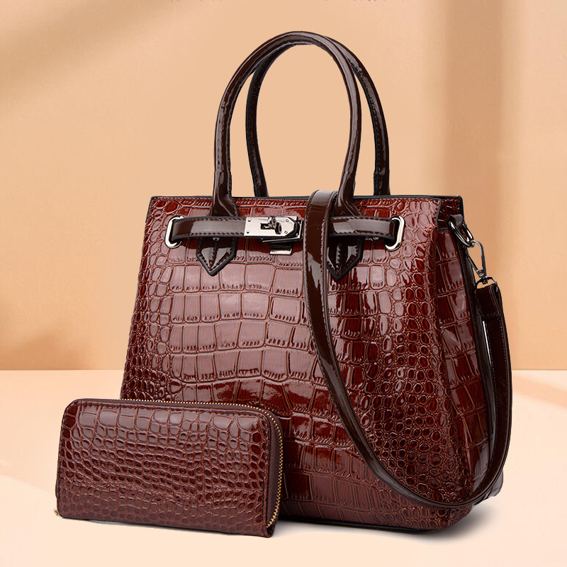 Luxury Crocodile Pattern Lacquer Leather Women's Bag 2022 New Two-piece Set Portable Single Shoulder Diagonal Straddle Bag