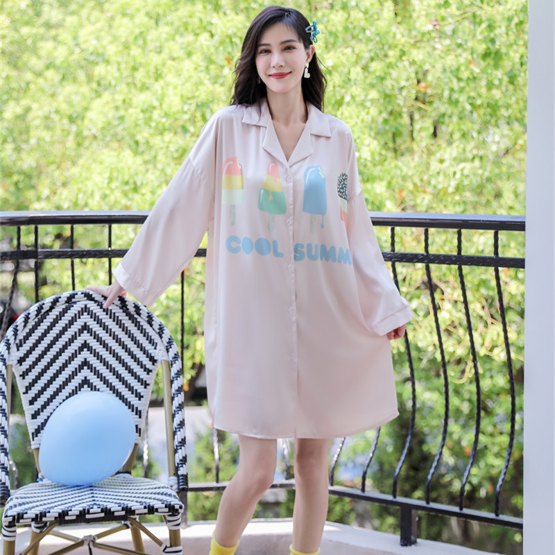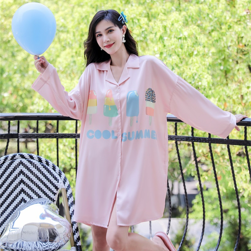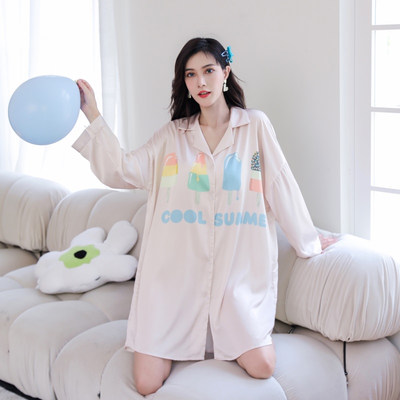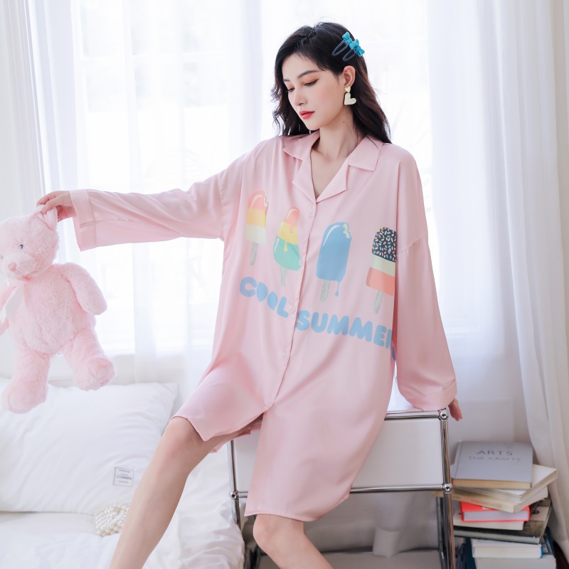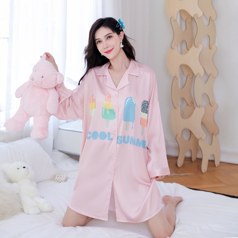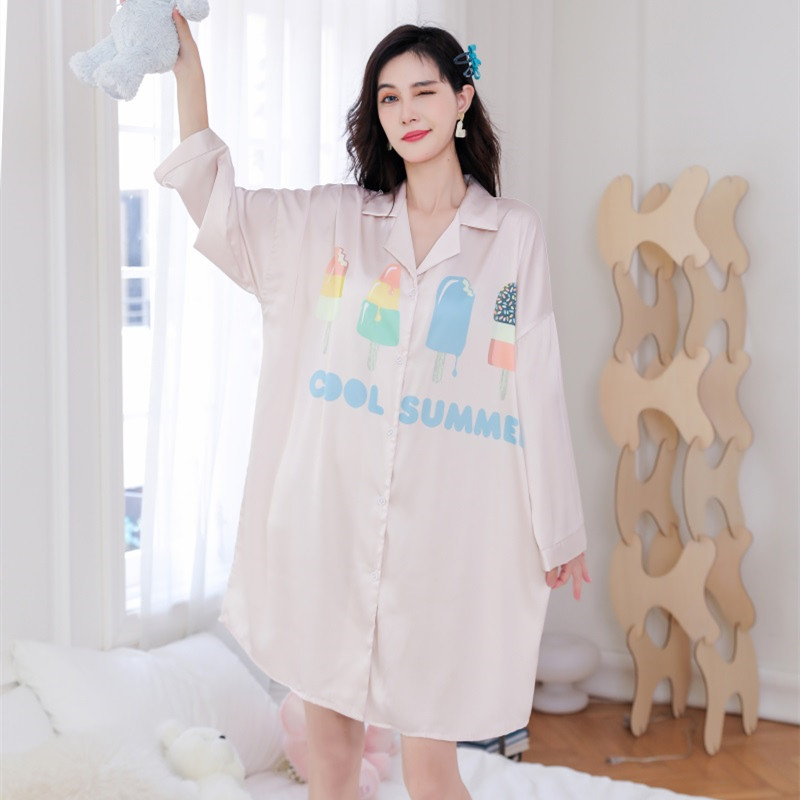 Product name | Hot Sell satin night shirt dress Sexy long sleeve nightgown ladies lapel casual silk pajamas plus size for women's sleepwear |