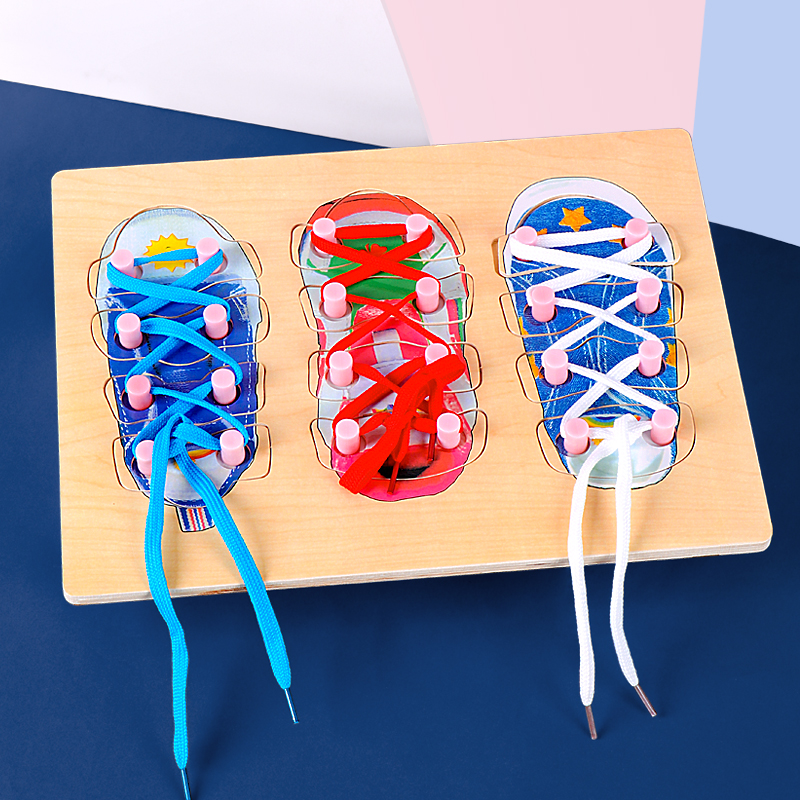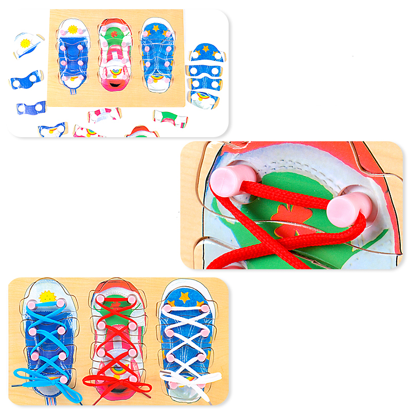Kids Shoes Lace Tie Toy Funny Lacing Montessori Toys Children Wooden Puzzle Toys