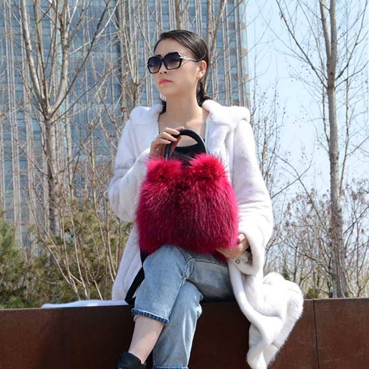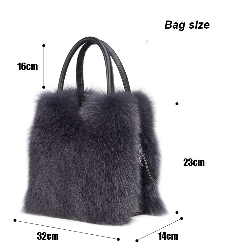 Mwfur Fashion Winter Luxury Women Real Fox Fur Shoulder Bag Large Tote Clutch Purse Handbag Ladies Handbags