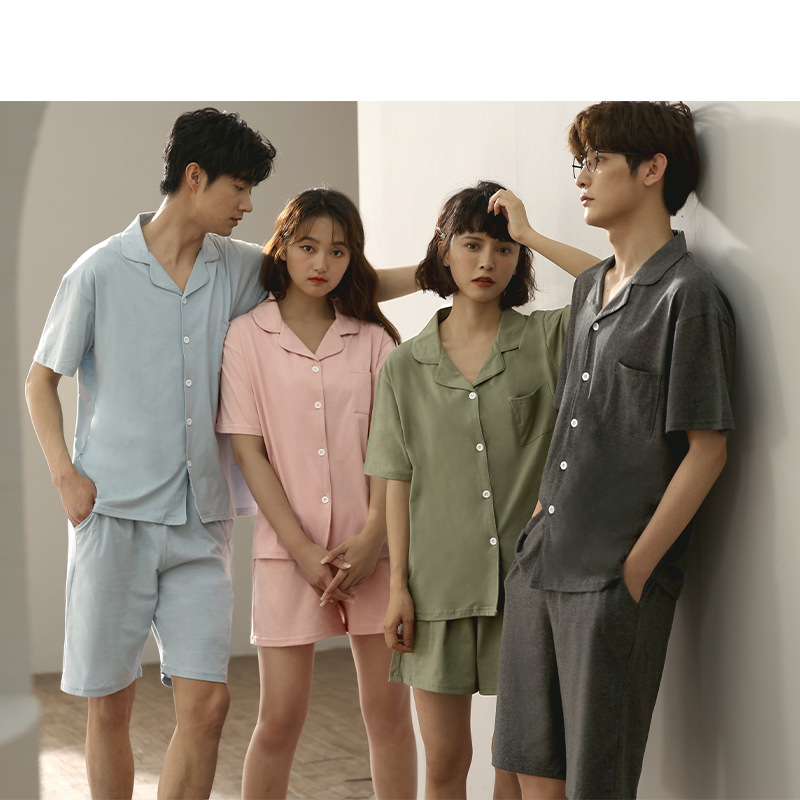 C1 Hot sale Cotton Couple Pajama Set Pijamas Women and Men Short Sleeve Pants Sleepwear Soft Breathable Nightwear