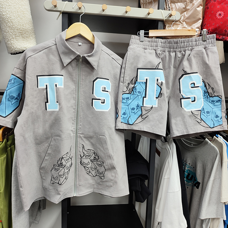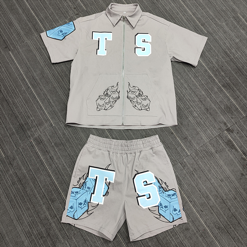 wholesale 2 piece set men shorts high quality sweat suits custom zip up sweatsuit
