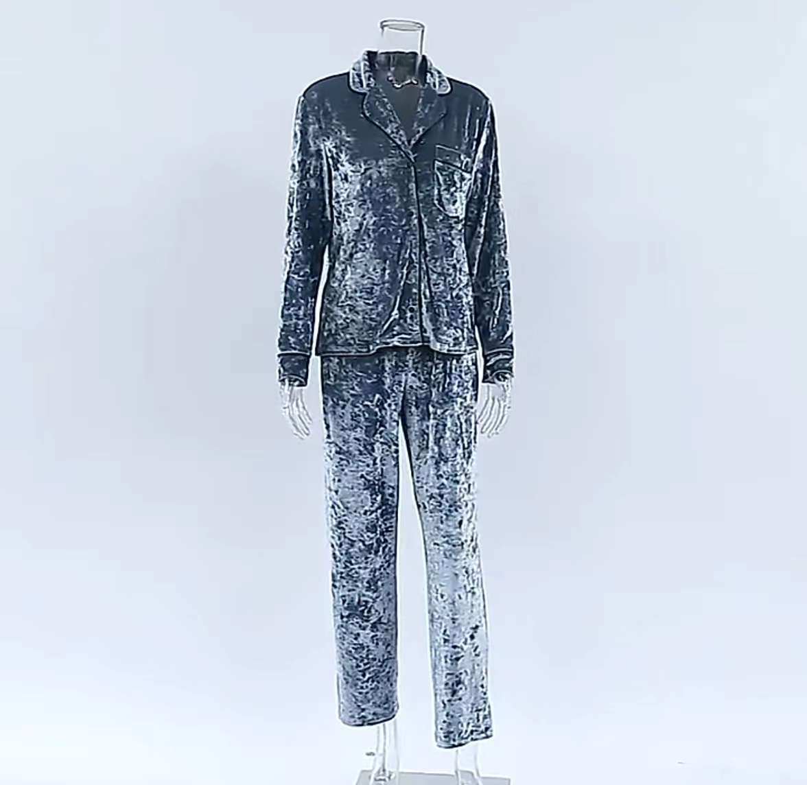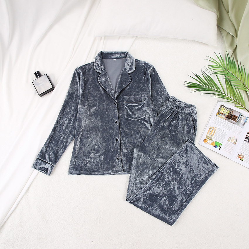 New Season Hot Sale Pajamas Soft Silk Velvet Winter Sleepwear Female Pyjama Long Sleeve 2 Pieces Pajama Set
