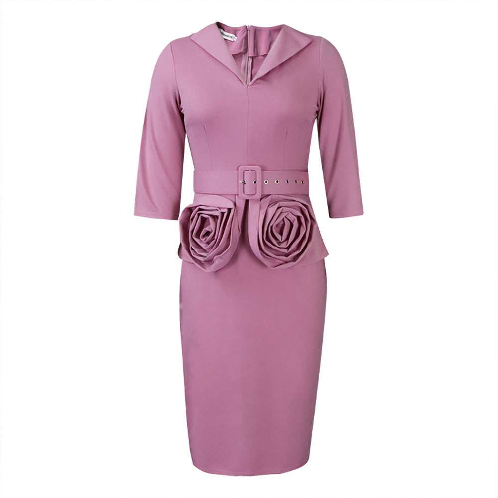 European And American Women's Clothing Independent Station Autumn Foreign Trade Large Office Professional Pencil Rose Dress