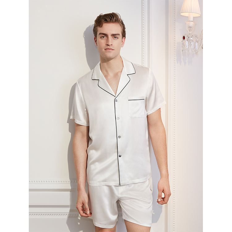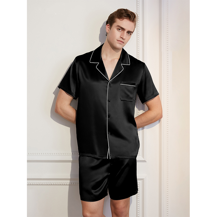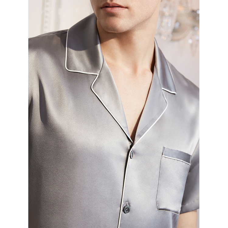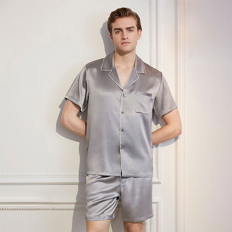 Factory wholesale silk sleepwear suit short sleeve shorts luxury loose breathable silk pajamas mens