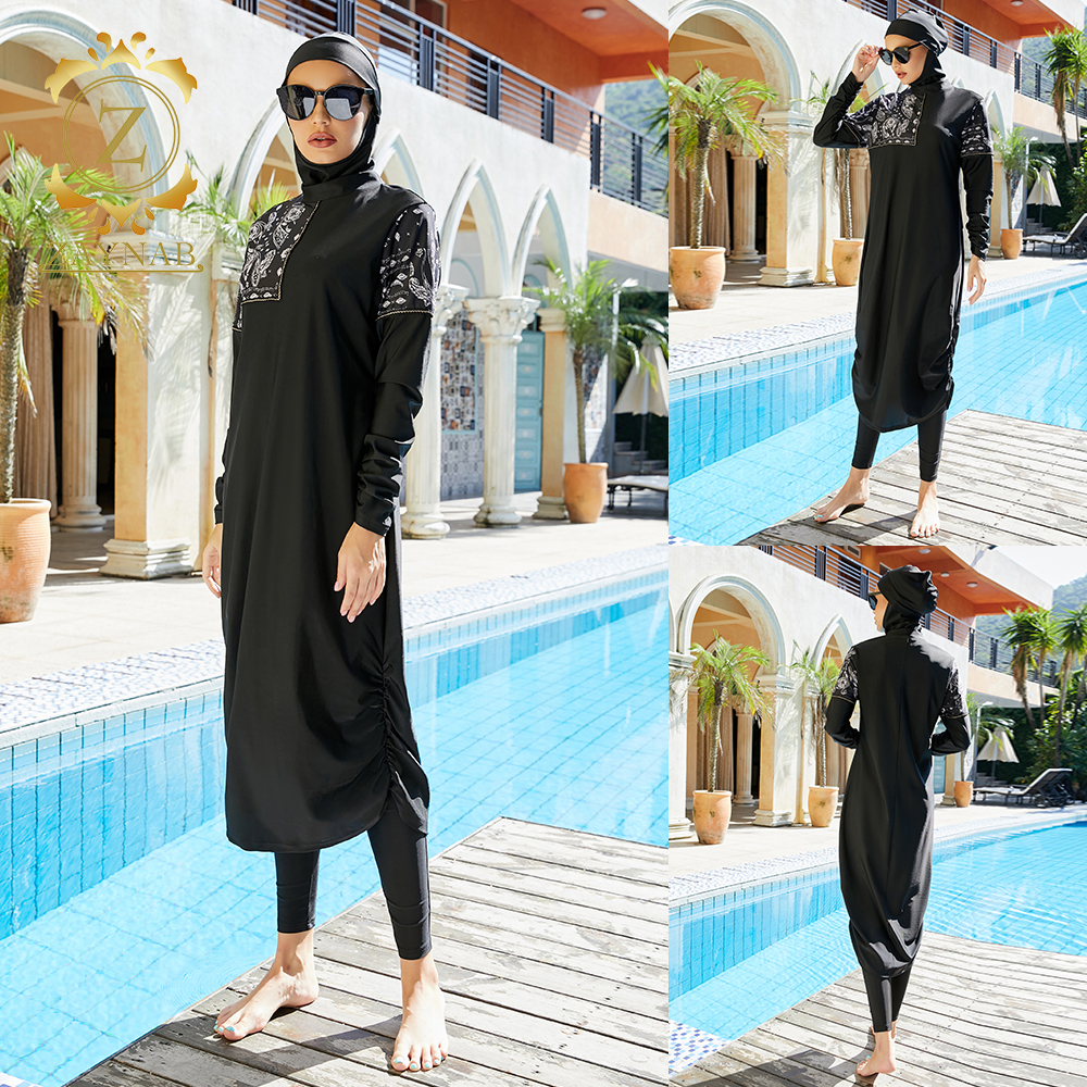 2022 Girl Grand Format Black Muslim Swimwear Women Muslim Custom Islamic Muslim Swimwear Swimsuit For Asya