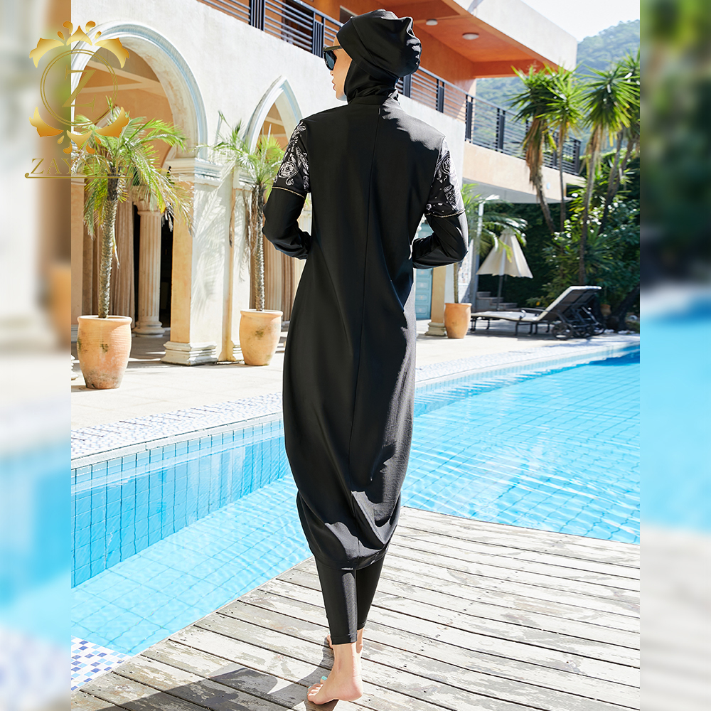 2022 Girl Grand Format Black Burkini Muslim Swimwear Women Muslim Custom Burkini Islamic Muslim Swimwear Swimsuit For Asya
