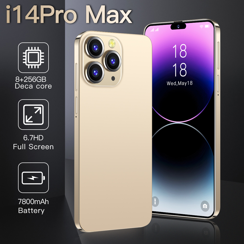 Specification: 1.Model No.:i14proMax 2.Platform : Dimensity 9000 Deca Core (Latest 10 Core) 3.Standby: Dual sim dual standby 4.Screen: 6.7”HD+ Display 1440*3200 5.Speaker: 1511 Box Speaker 6.Network : 2G:GSM850/900/1800/1900MHz, 3G:WCDMA850/2100MHz *4G:FDD-LTE: B1 /2 /3 /4 /5 /7 /8 /20 /28A /28B TDD-LTE: B38/B39/40 /41 *5G *4G,5G connectivity may vary based on region availability and local operator support. *The frequencies supported by the device may vary depending on the region. 7.Vibration: Support 8.Colors: Black/Gold/Blue/Green/purple 9.Memory:8GB RAM+256GB ROM 10.Multi Media: MP3/MP4/3GP/FM Radio 11.Camera: 48MP+108MP 12.Multi Function: Full HD screen, Face recognition, Dual SIM, Wi-Fi,FM,Bluetooth4.0,Gravity Sensor, Alarm ,Calendar ,Calculator ,Audio recorder ,Video recorder, WAP/MMS/GPRS, Image viewer,E-Book,World clock,Tasks card, 13.Languages: Muti-language support 14.Others: Android 12 15.Battery: 7800mAh Lithium-ion battery 16.Ultra unibody 17.5Pin input |