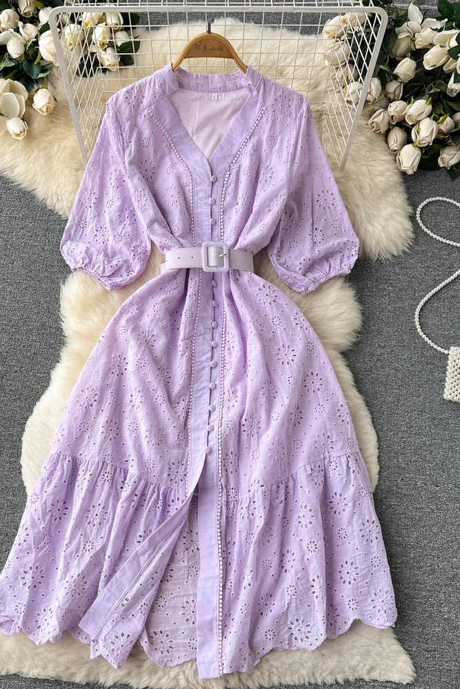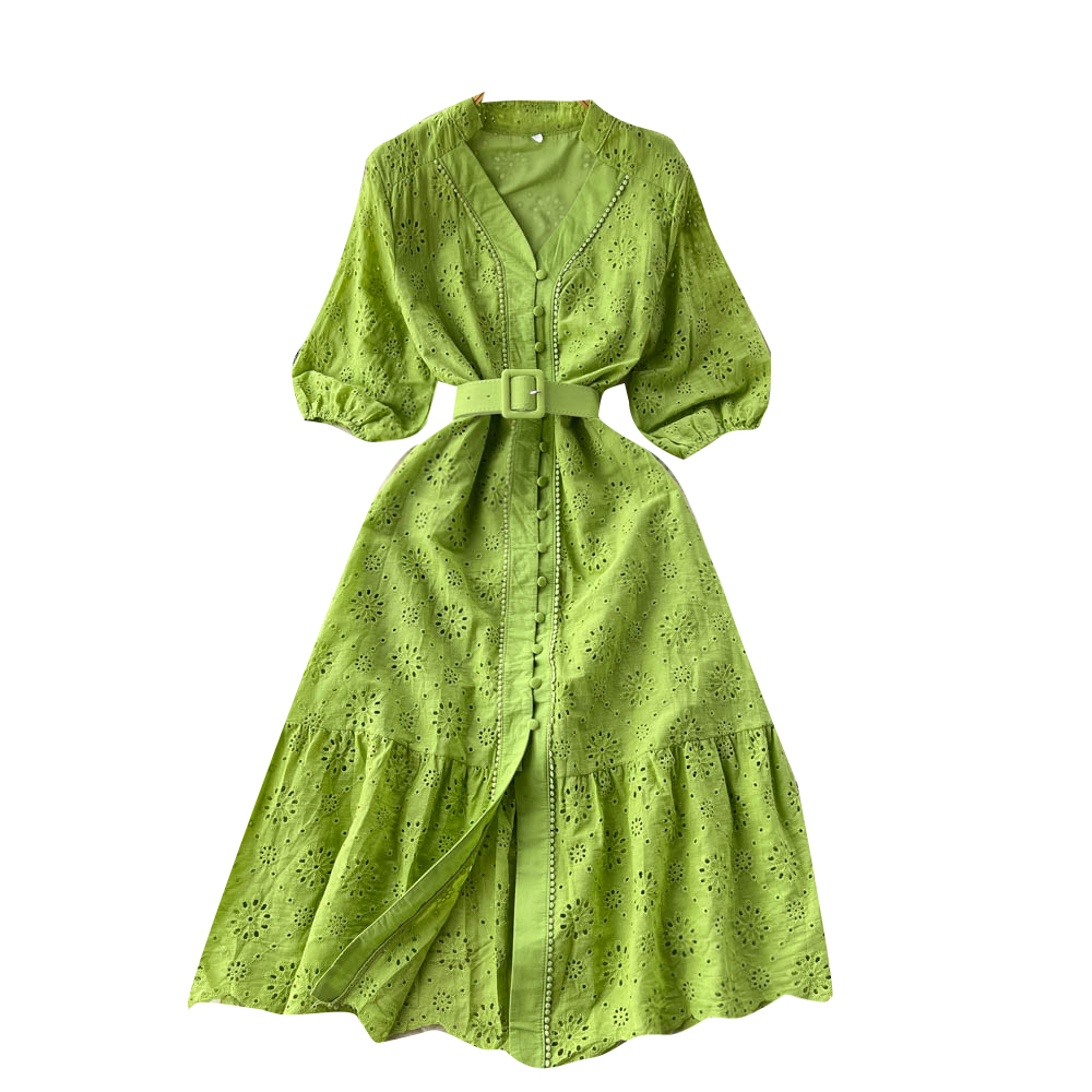 Short Sleeve O-neck Solid A-line Dress Summer Ruffles Midi Dress Ladies Casual Dress Clothes Women Wholesale